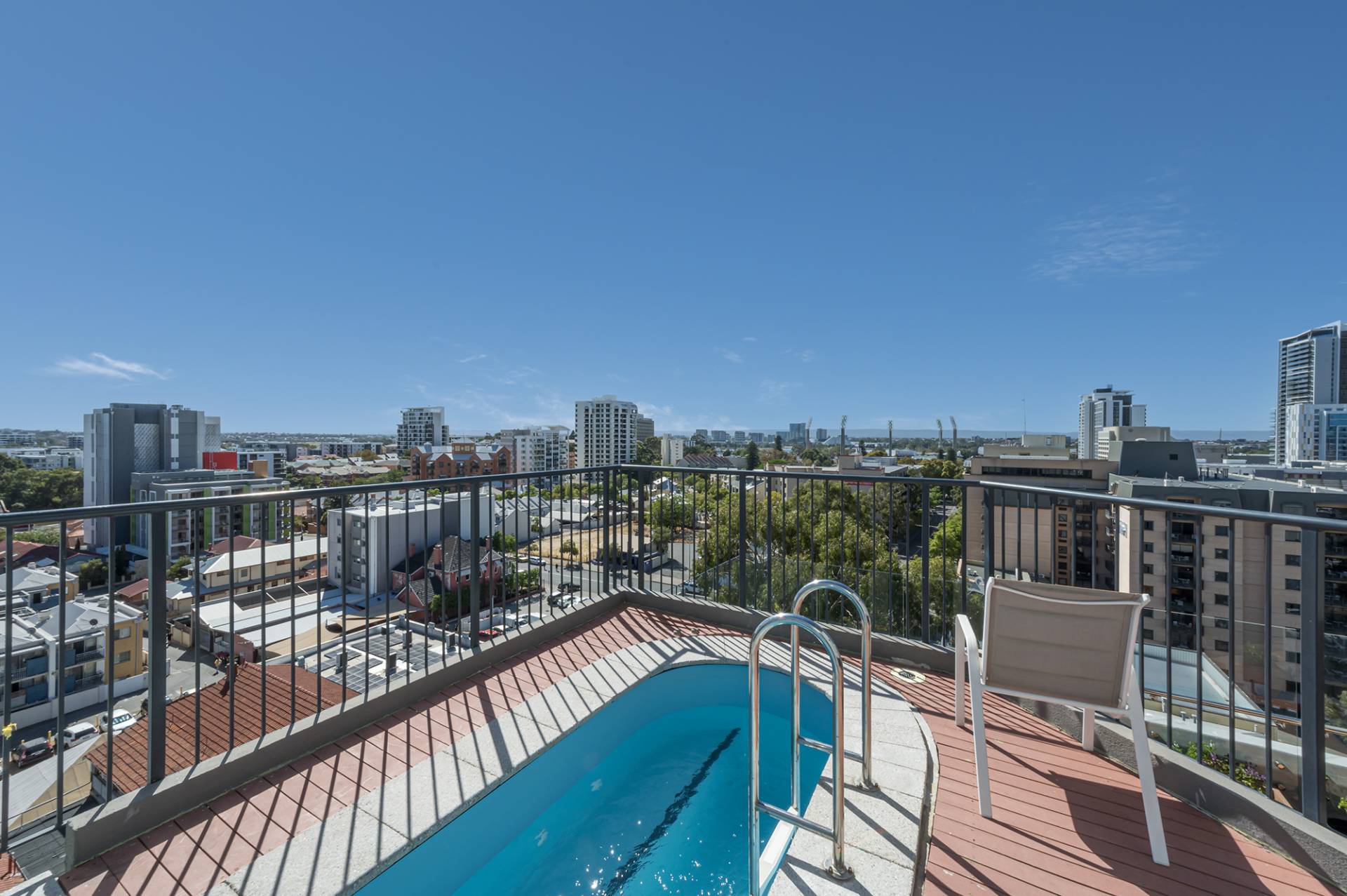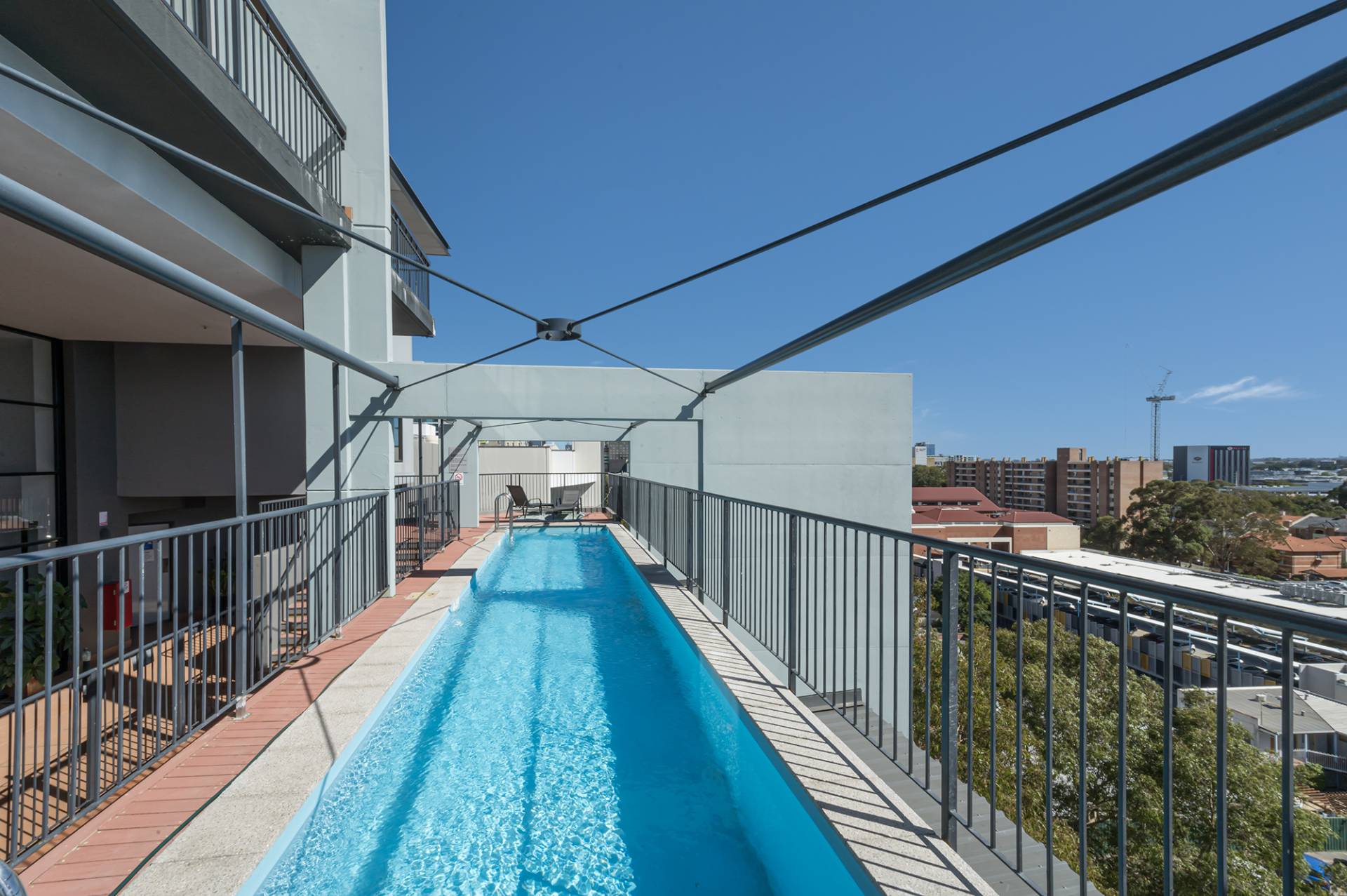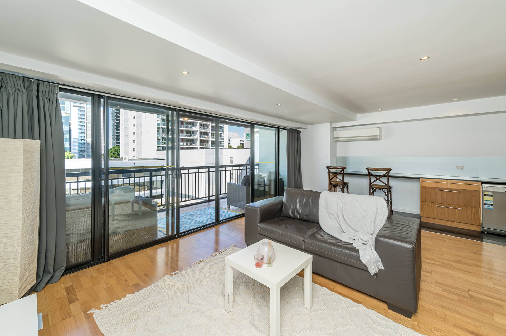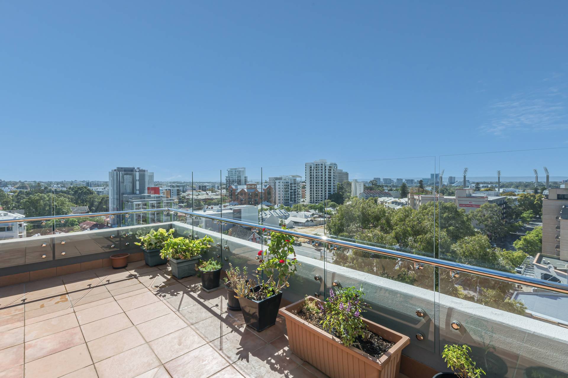 A central living area large enough for a modular lounge and table and chairs also opens out to the balcony, with sweeping views out across east Perth. Down the hall, both bedrooms feature sliding mirrored robes with the main enjoying its own sleek bathroom and huge walk-in glass shower with a separate bathroom and laundry providing further convenience.