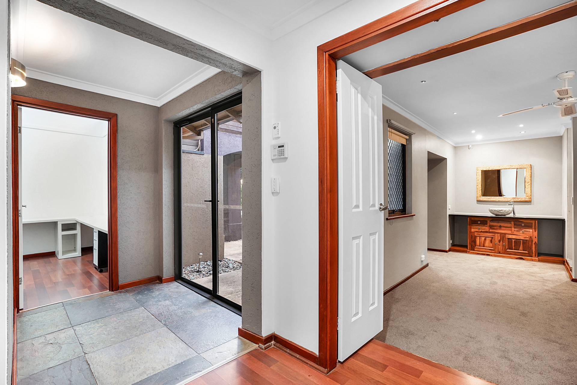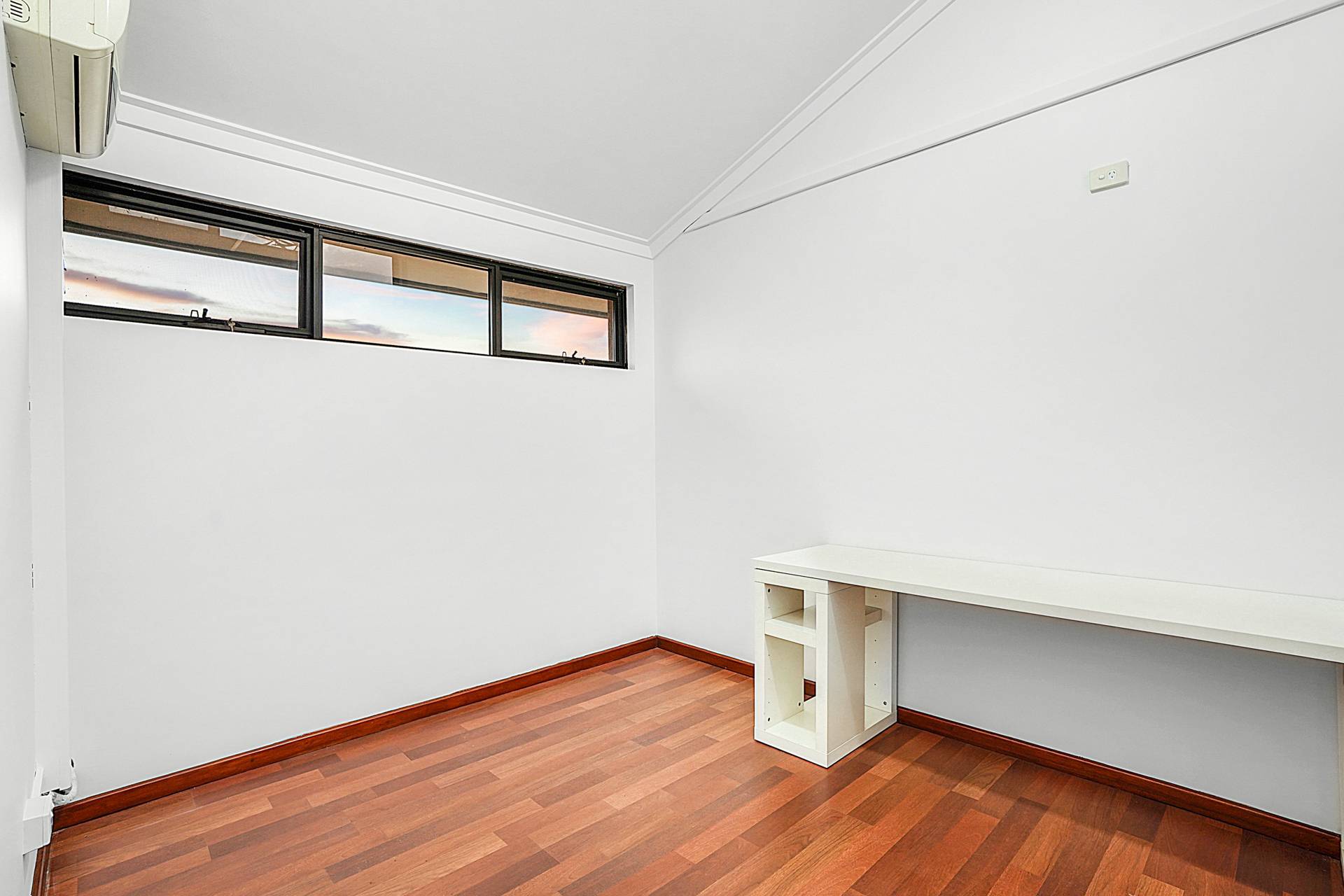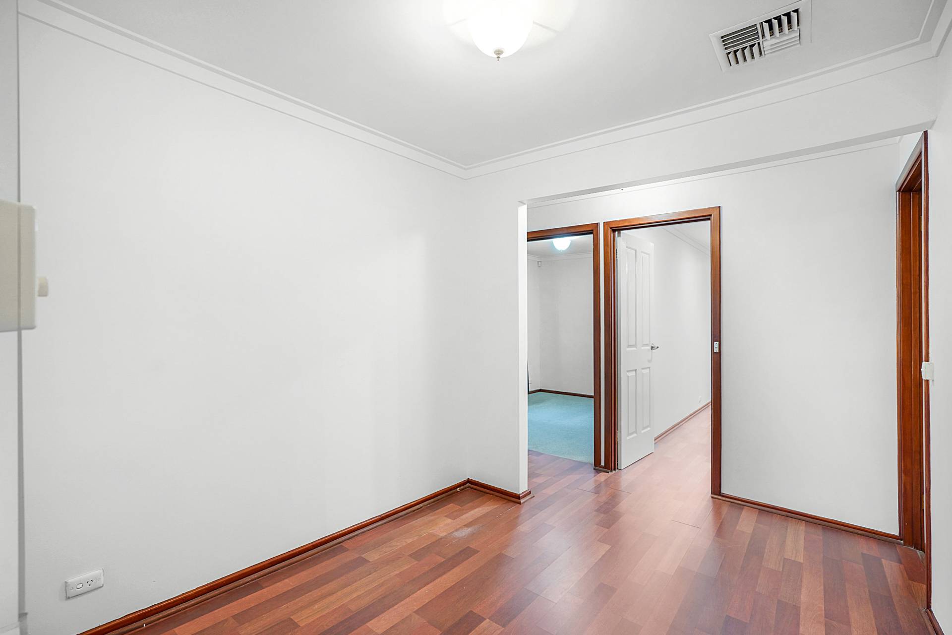 Separate office with built-in desk, timber flooring and split system air-conditioning