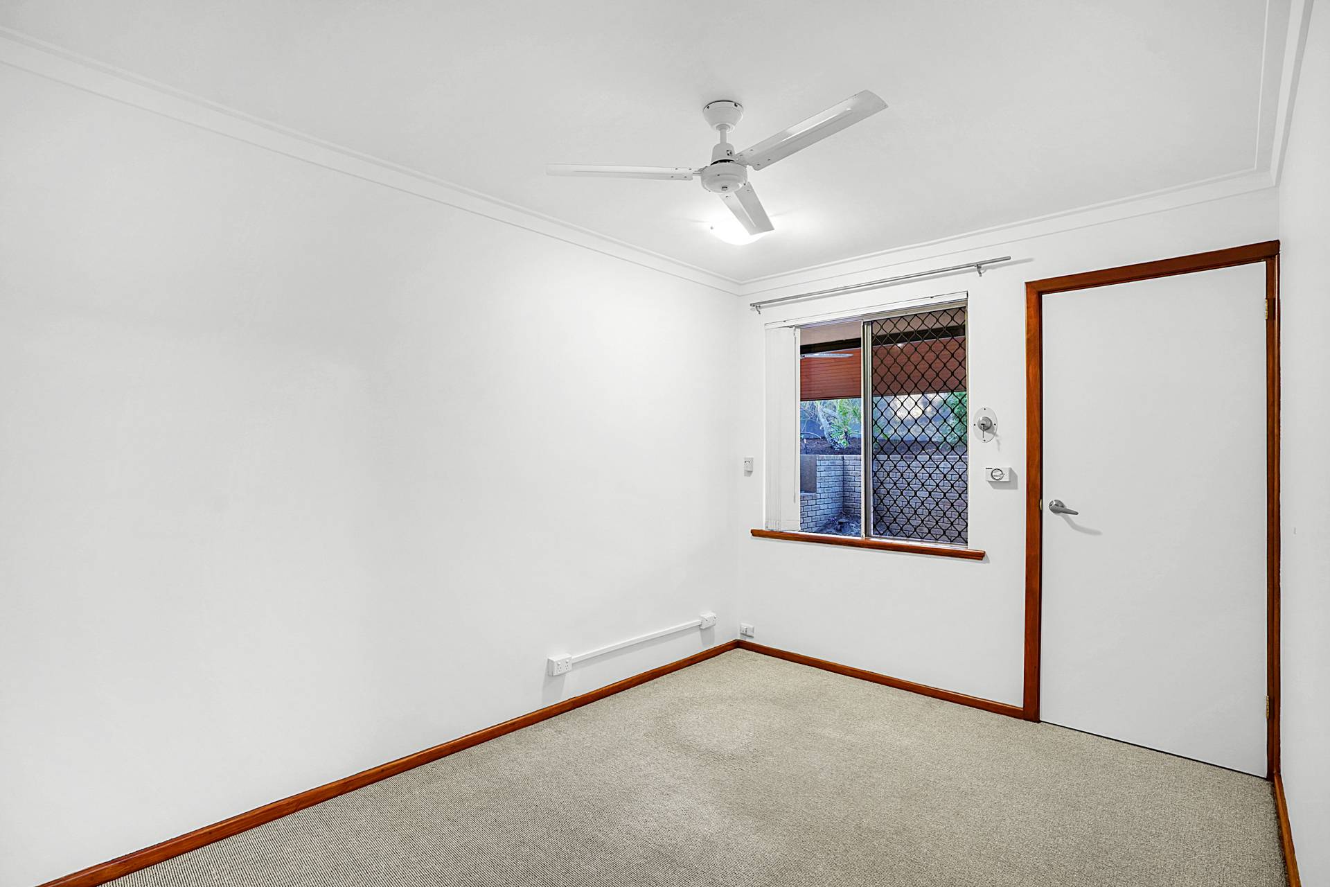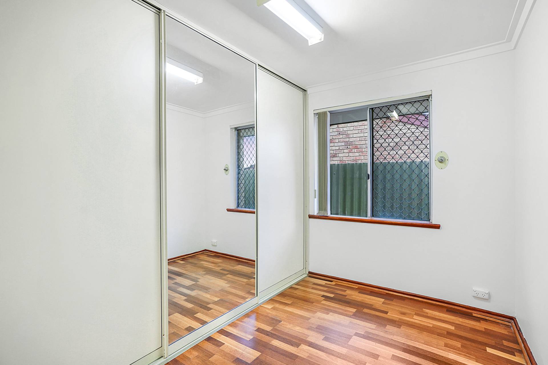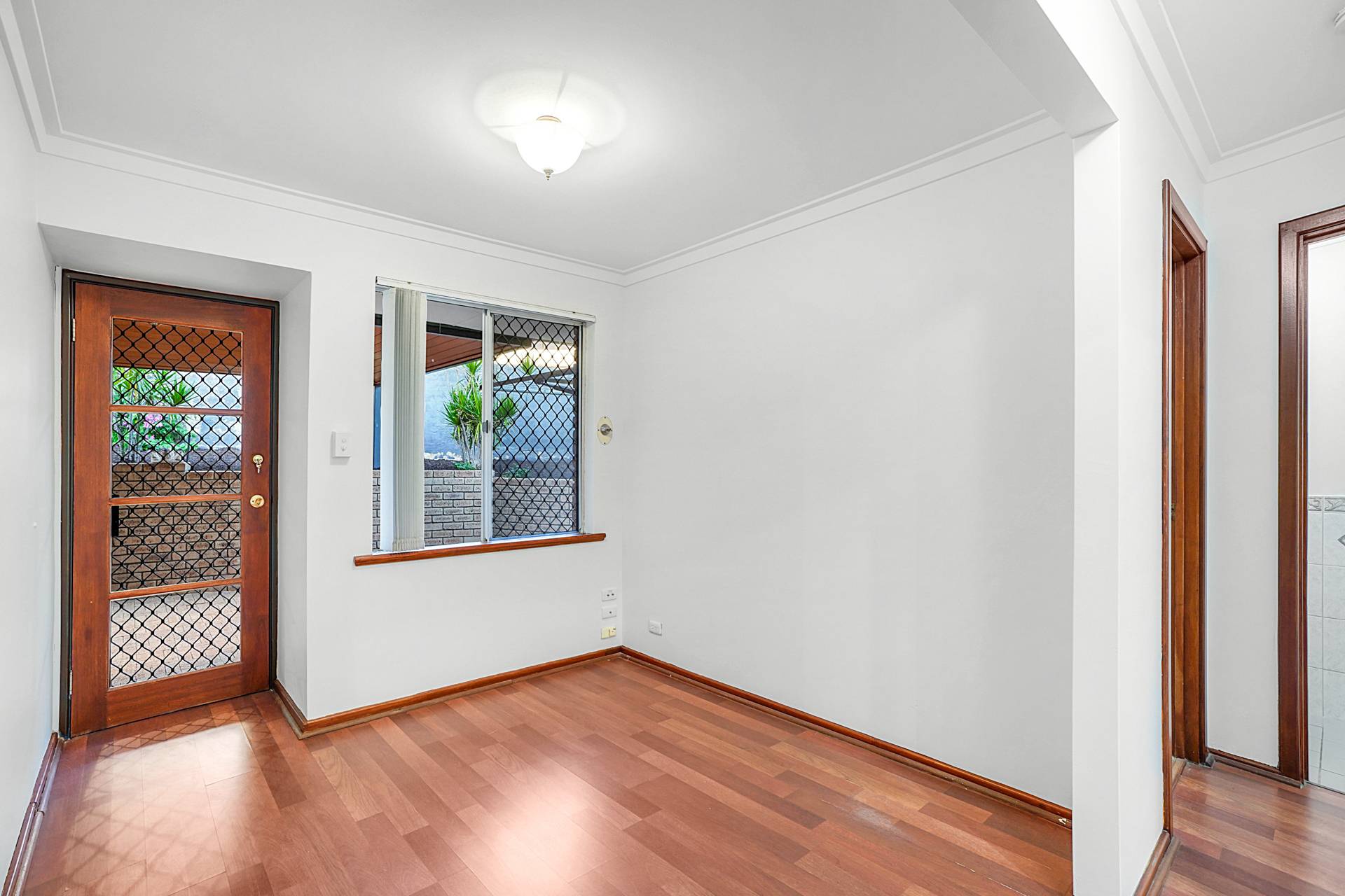 Separate office with built-in desk, timber flooring and split system air-conditioning