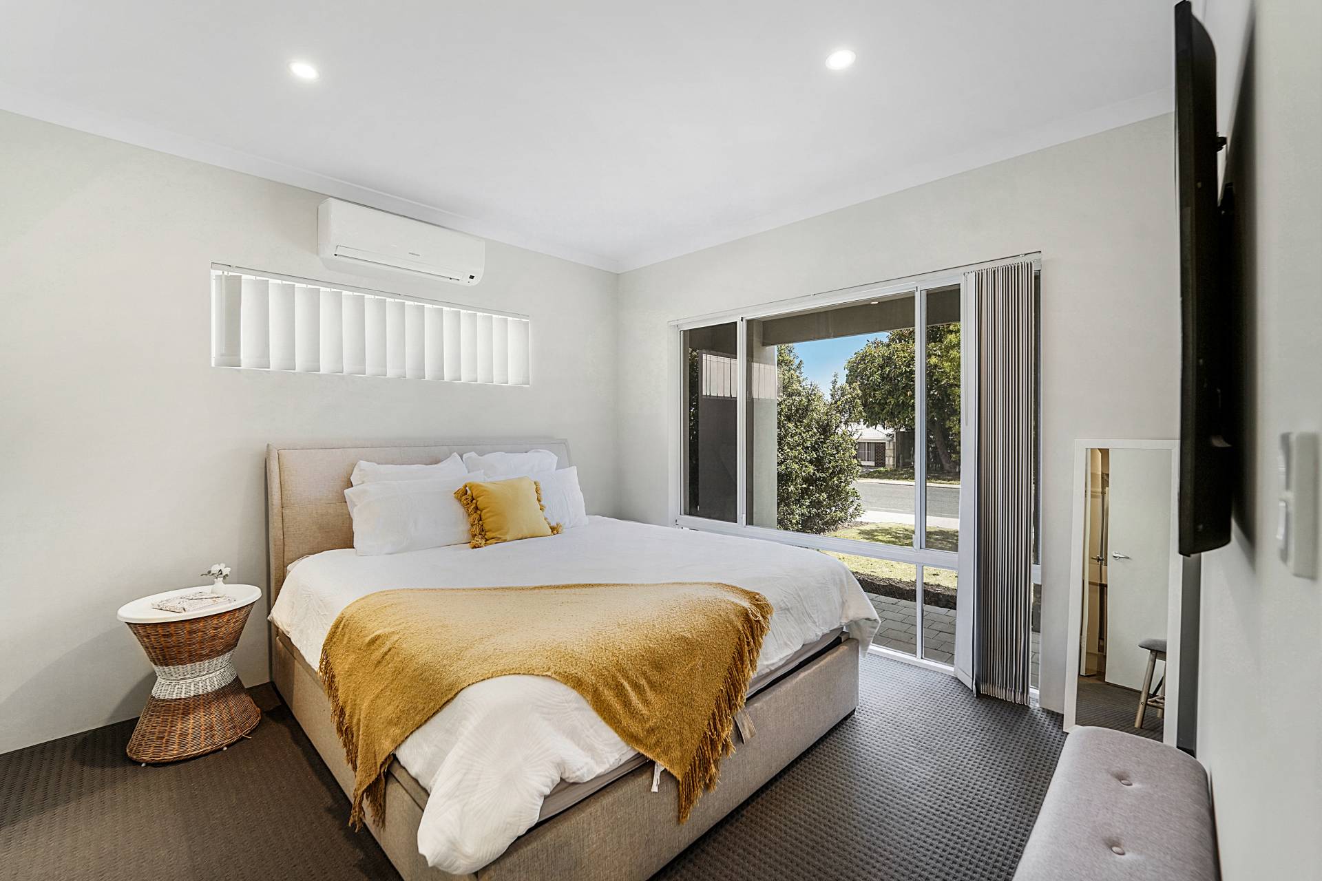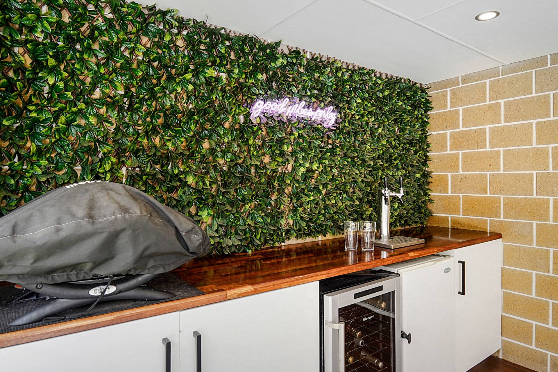 - Peaceful and private outdoor entertaining area includes timber decking, weather blinds, with built-in benches and bar.