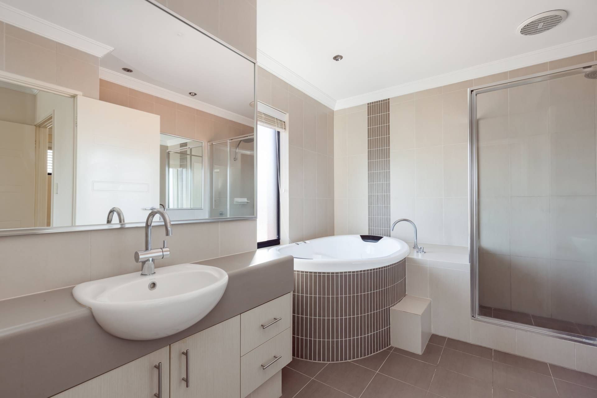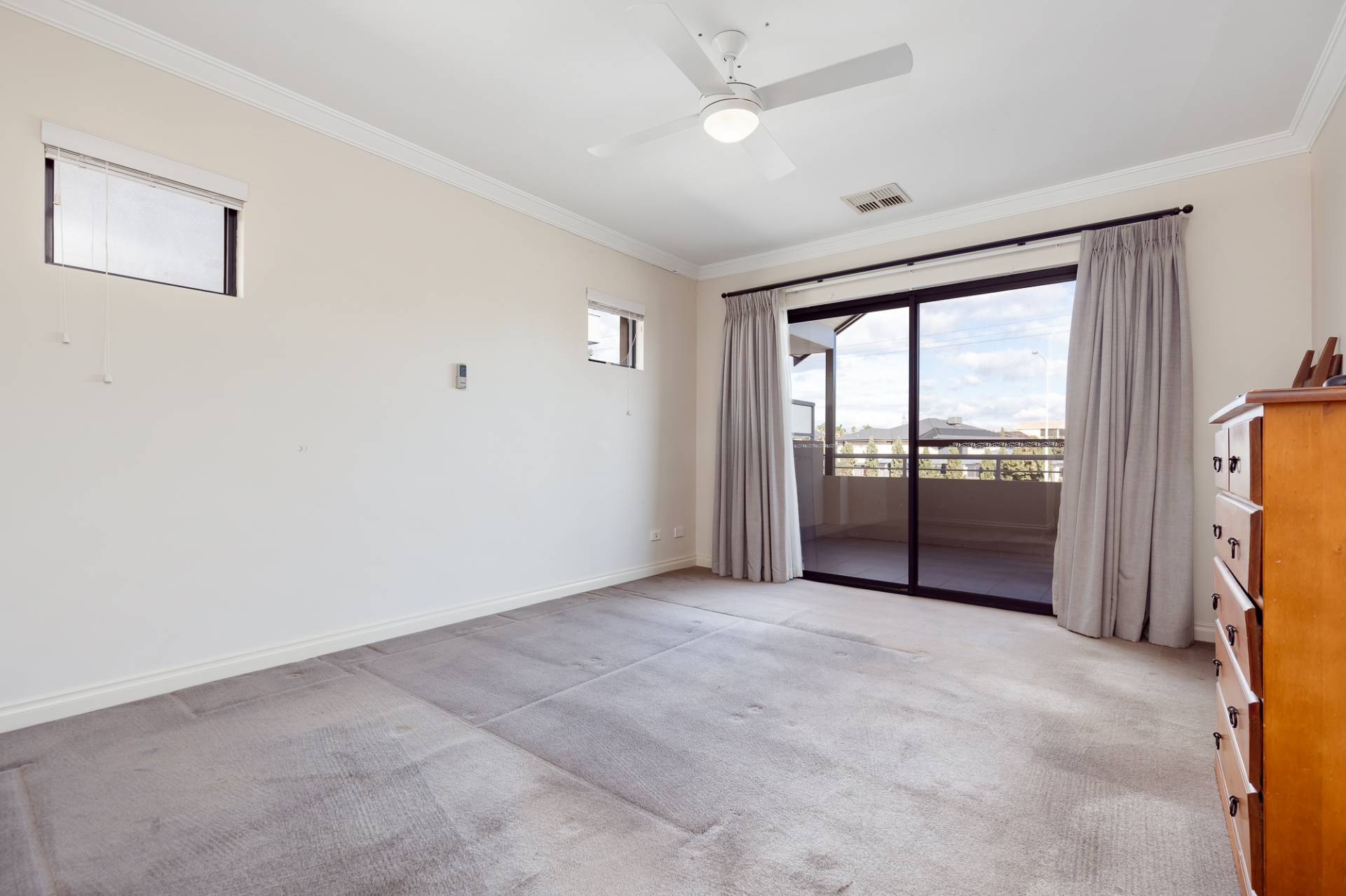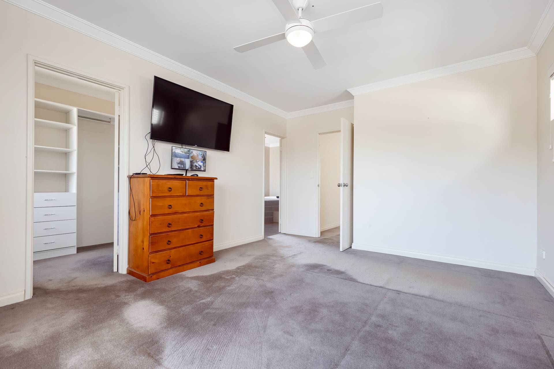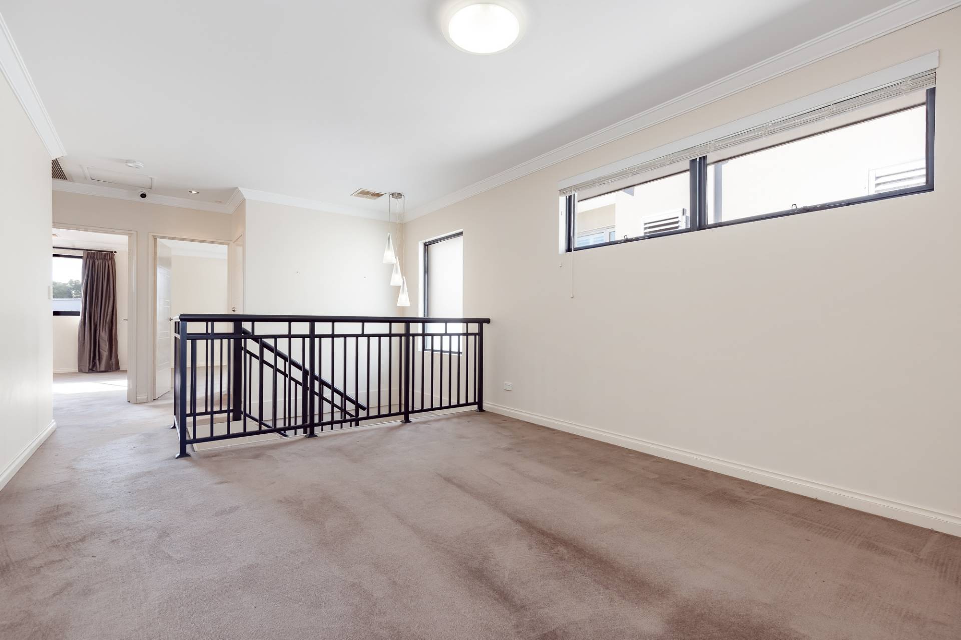 Upstairs, the bedrooms and private living areas are well thought out. All three bedrooms are queen-sized, with the second and third bedrooms featuring walk-in robes. The master bedroom at the front of the home includes a walk-in fitted wardrobe, a sumptuous bathroom with a massive oval bath, shower, his-and-hers vanities, and a separate toilet. This room opens to a private front balcony with park views. The second and third bedrooms are served by a large main bathroom complete with a bath, shower, vanity, and a separate toilet. The upstairs living area can be used as another TV area, gym space, or a second study.