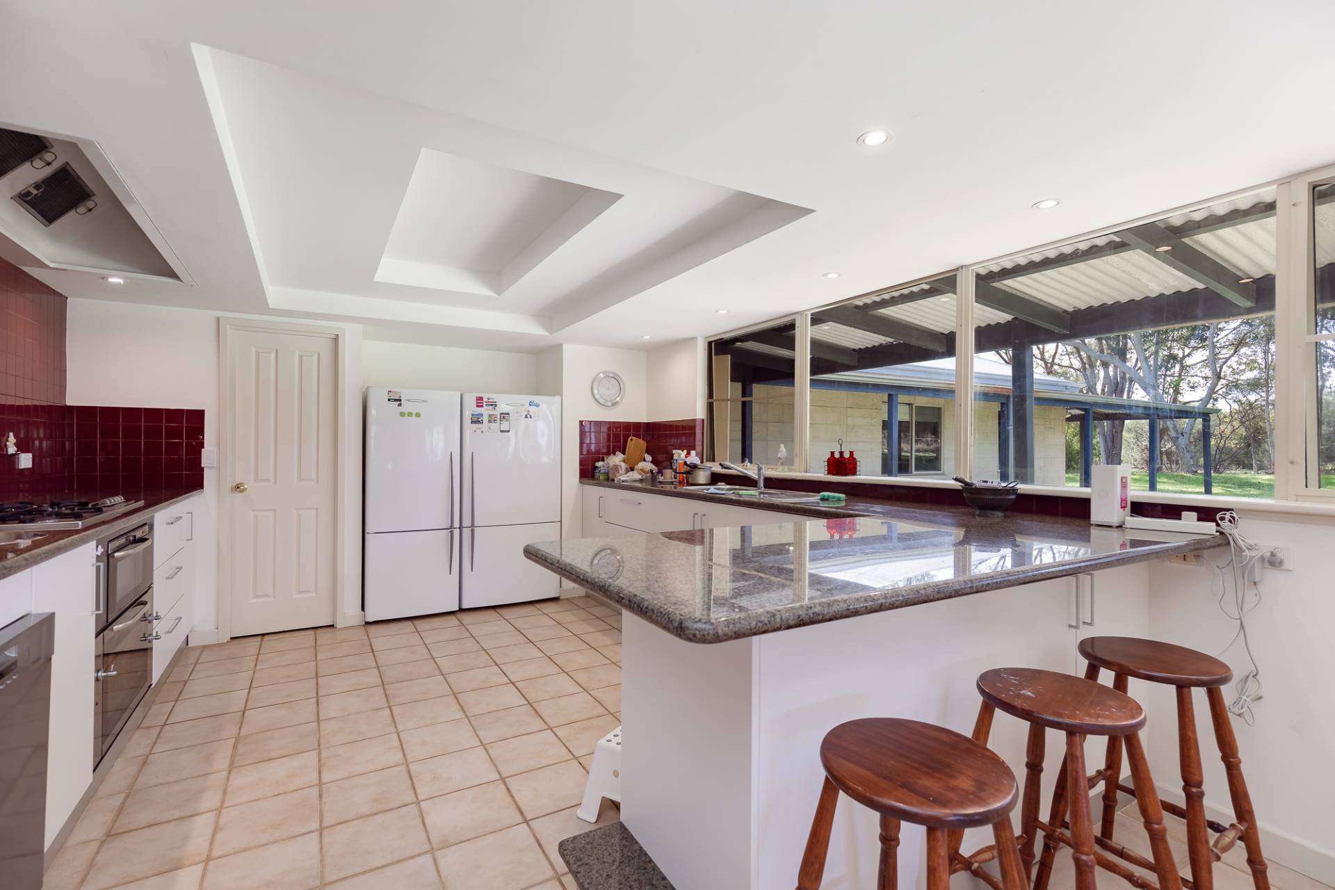 • Kitchen with gas cooktop, 2 electric ovens, walk-in pantry & dishwasher