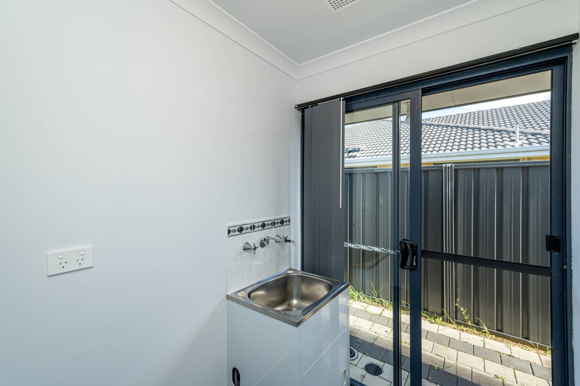 Separate laundry with sliding door rear access