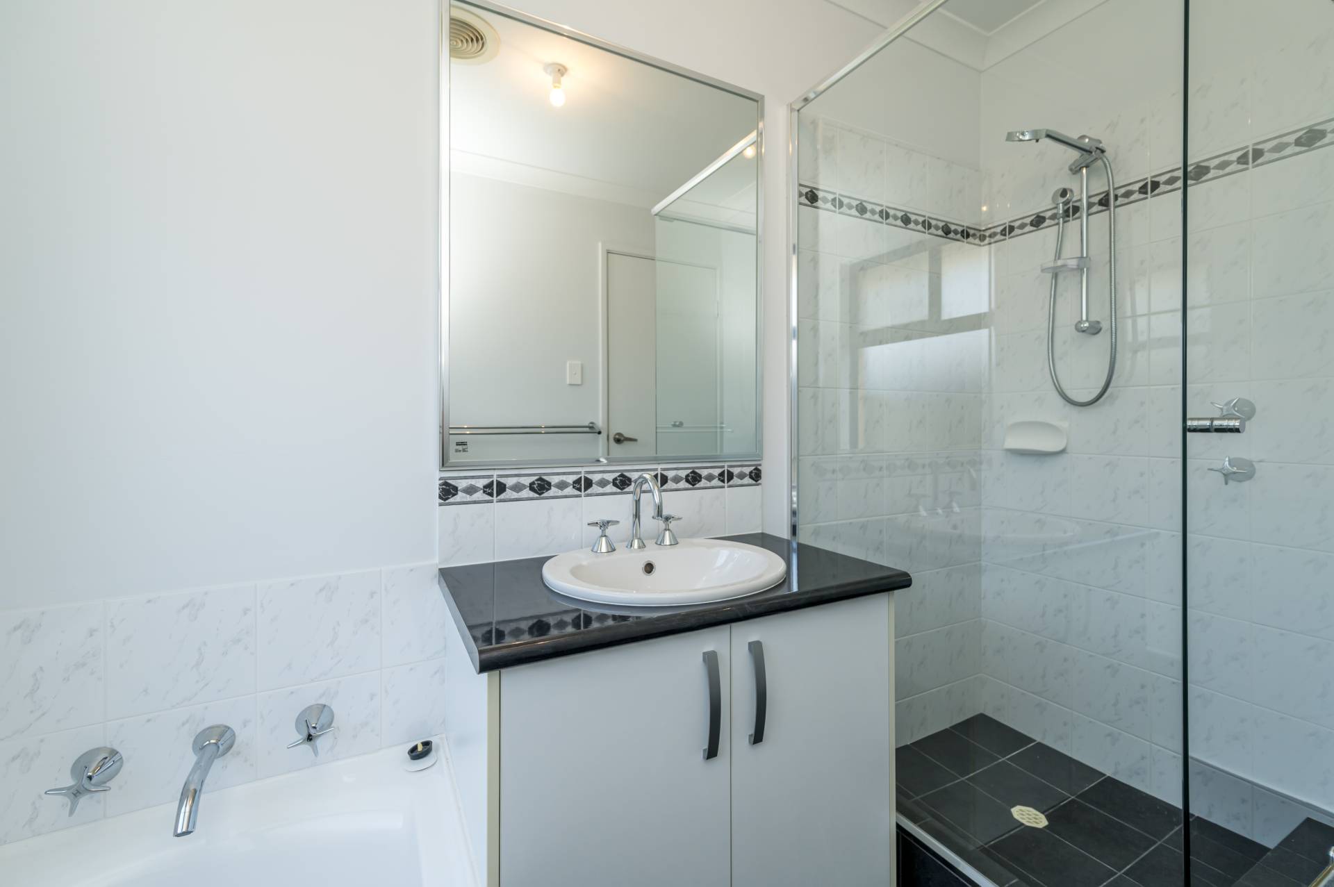Modern bathroom with glass shower screen and bath