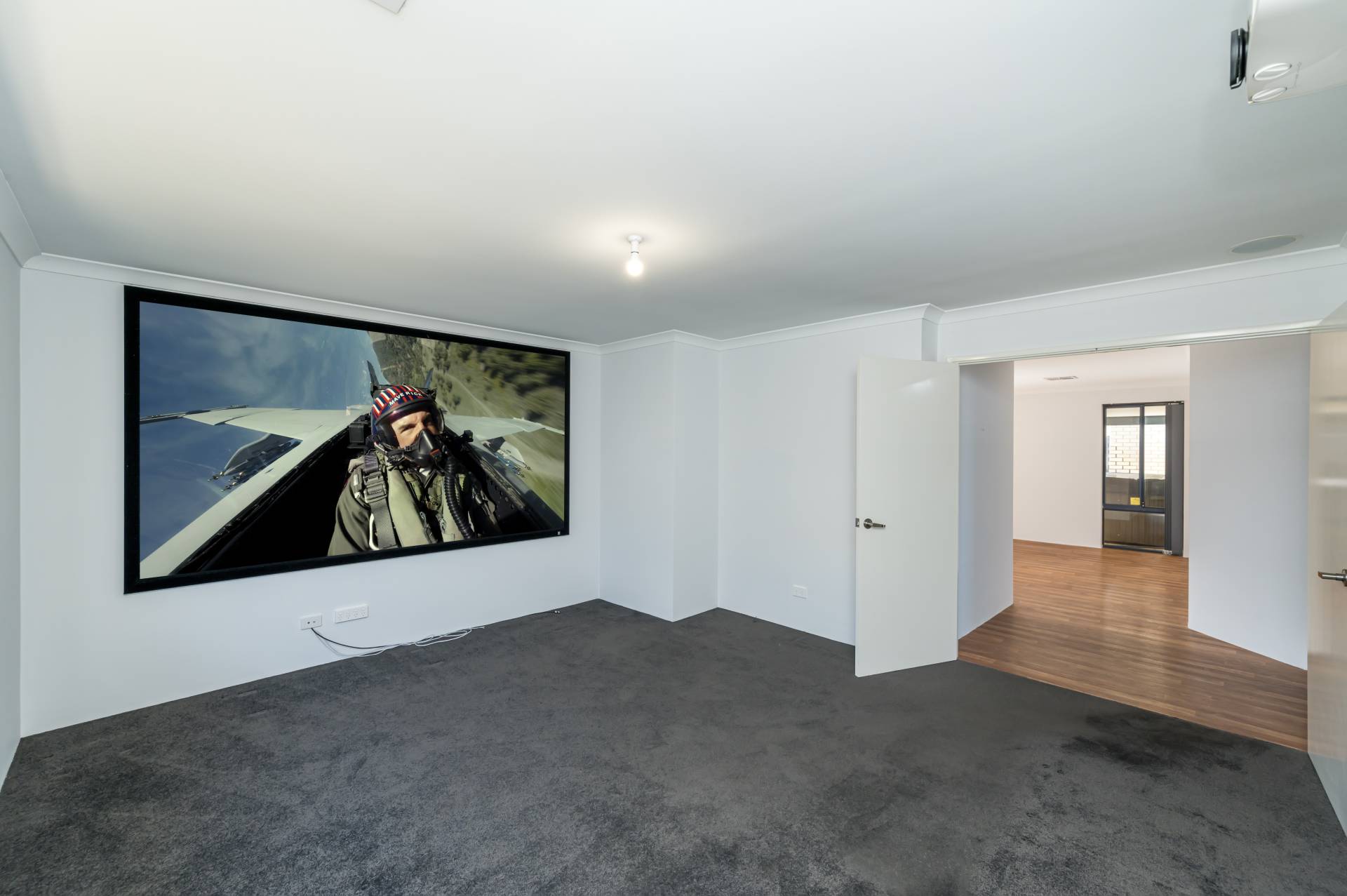 Across the hall is where the magic happens. Leave the cinema behind and create your family fun with your very own dedicated theatre room. Movie nights are a special occasion here in this huge, comfortable room with a projector and wall-to-wall 120 inch TV screen – a private hideaway for all the family to come together and indulge in, or a great zone for the kids to entertain, this is a stand-out feature of the home that everyone can enjoy.