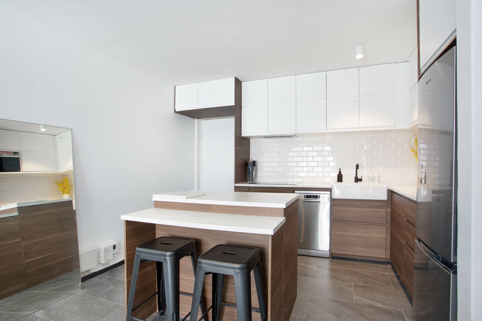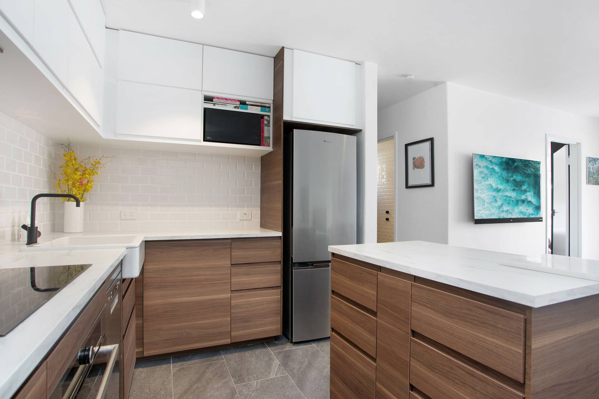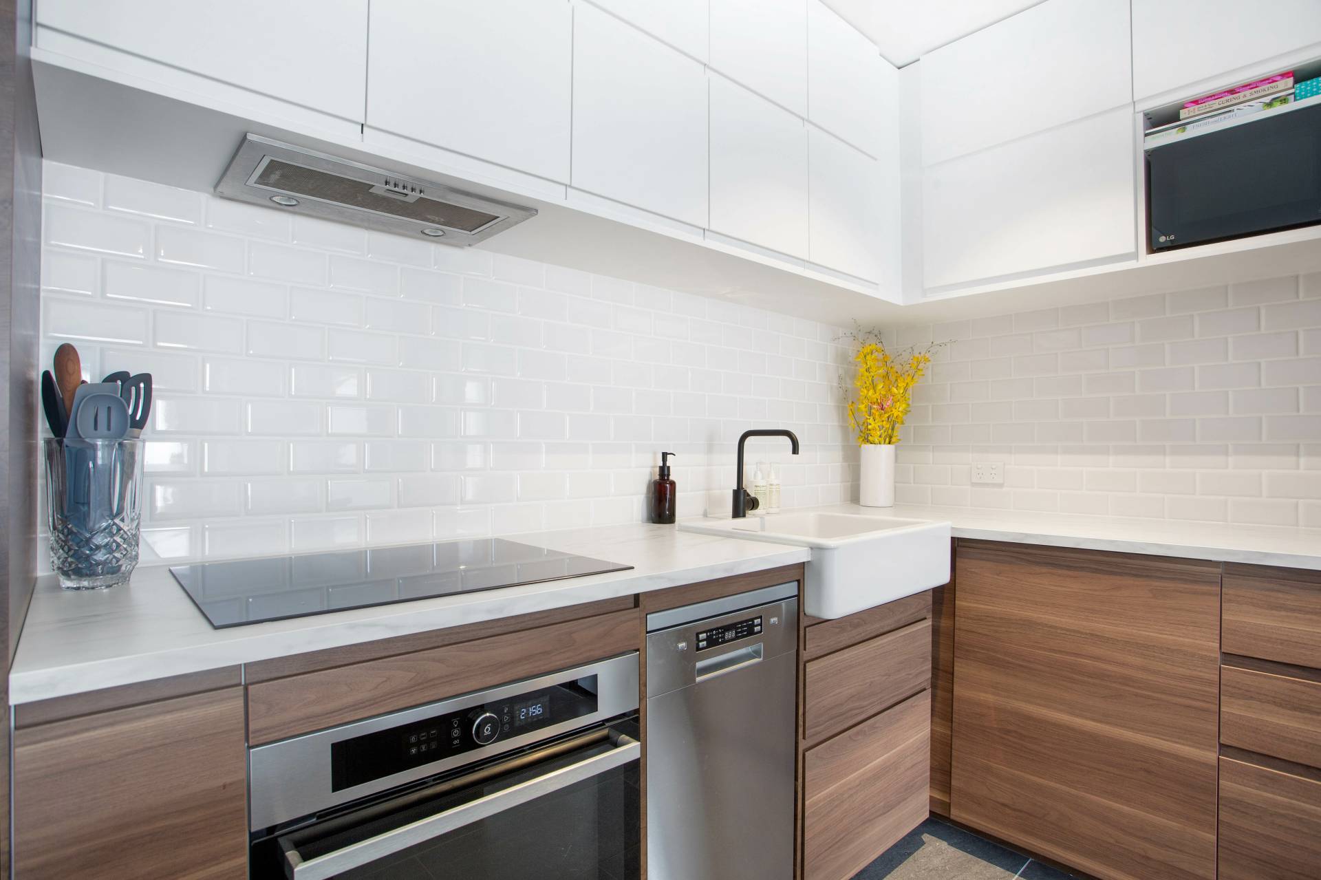 • Kitchen: Elegant design with ample cupboard and drawer space, quality appliances including a dishwasher, electric cooking, and an island bench suitable for dining.