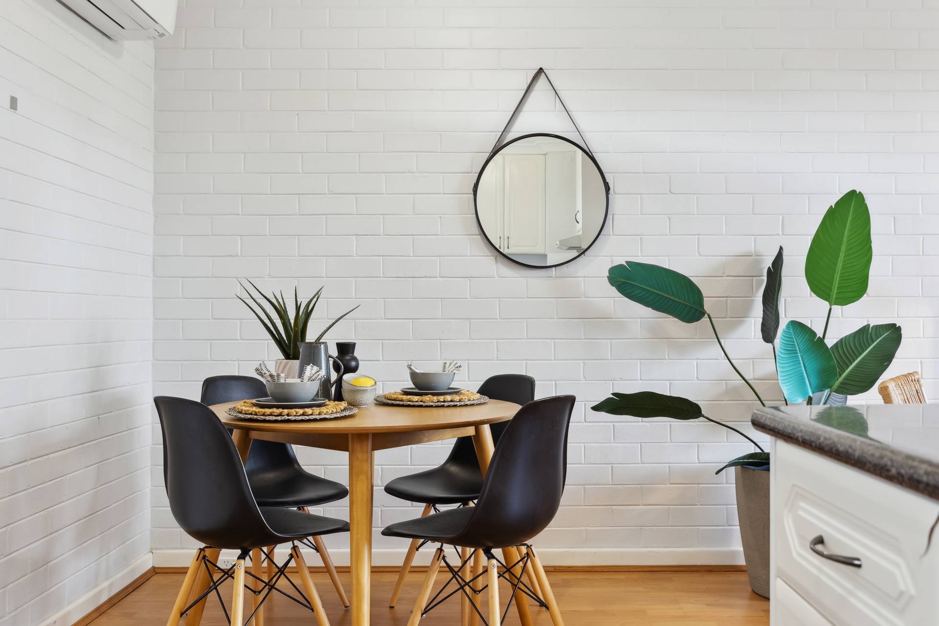 The apartment features a contemporary design within a secure complex. It includes a spacious bedroom with built-in mirrored wardrobes and a bright, open plan living/dining area with a split system air-conditioning unit. The kitchen is well-equipped with a gas cook-top and plenty of bench and cupboard space. Enjoy your own private balcony with treetop vistas, perfect for unwinding after a long day.