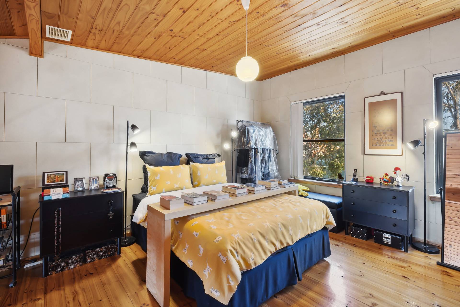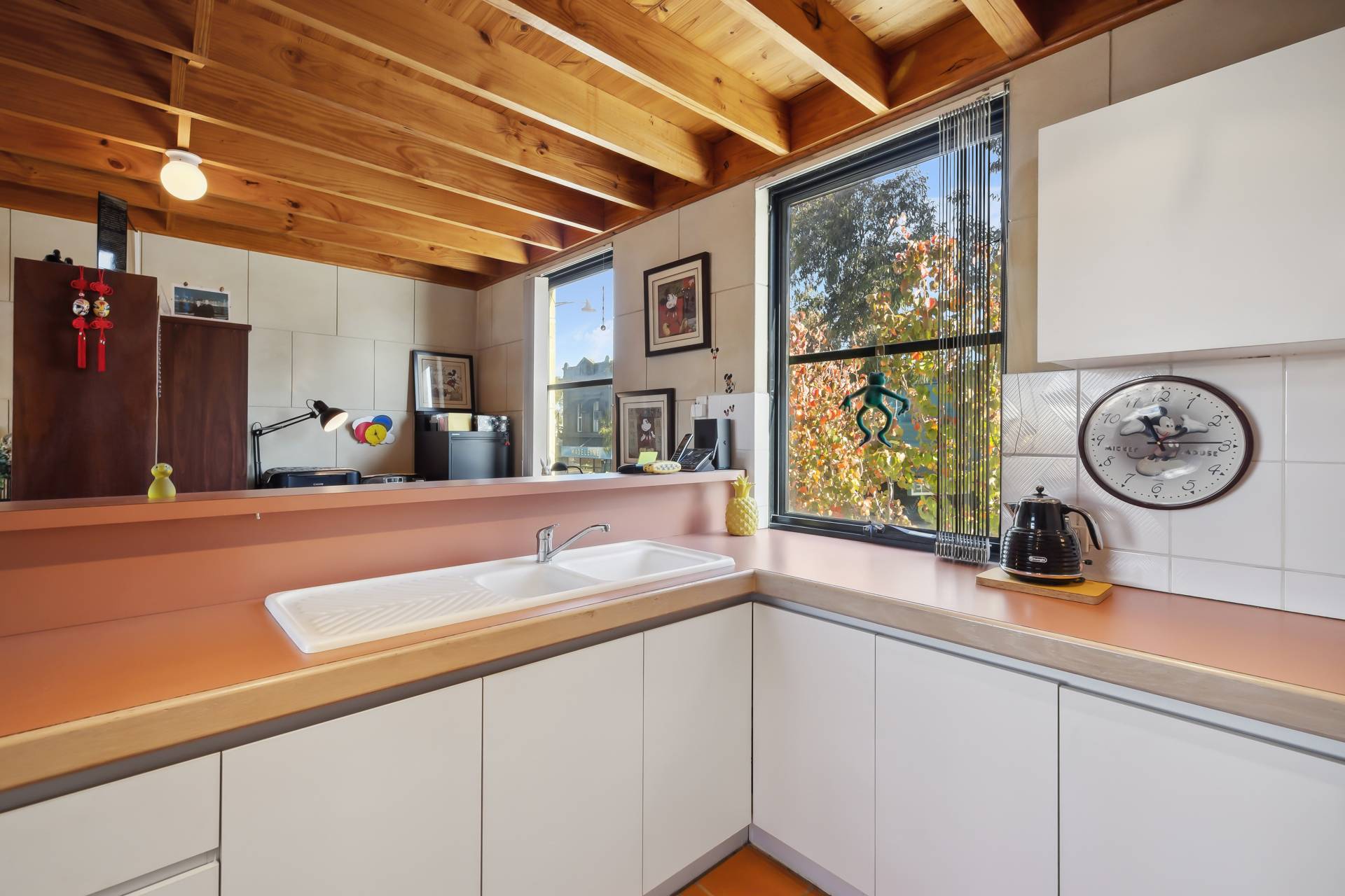 The apartment boasts a neat kitchen and an open-plan living/dining area, creating a spacious feel that is both practical and inviting. High raked pine ceilings add a touch of character, while the split system air conditioning ensures comfort throughout the year.