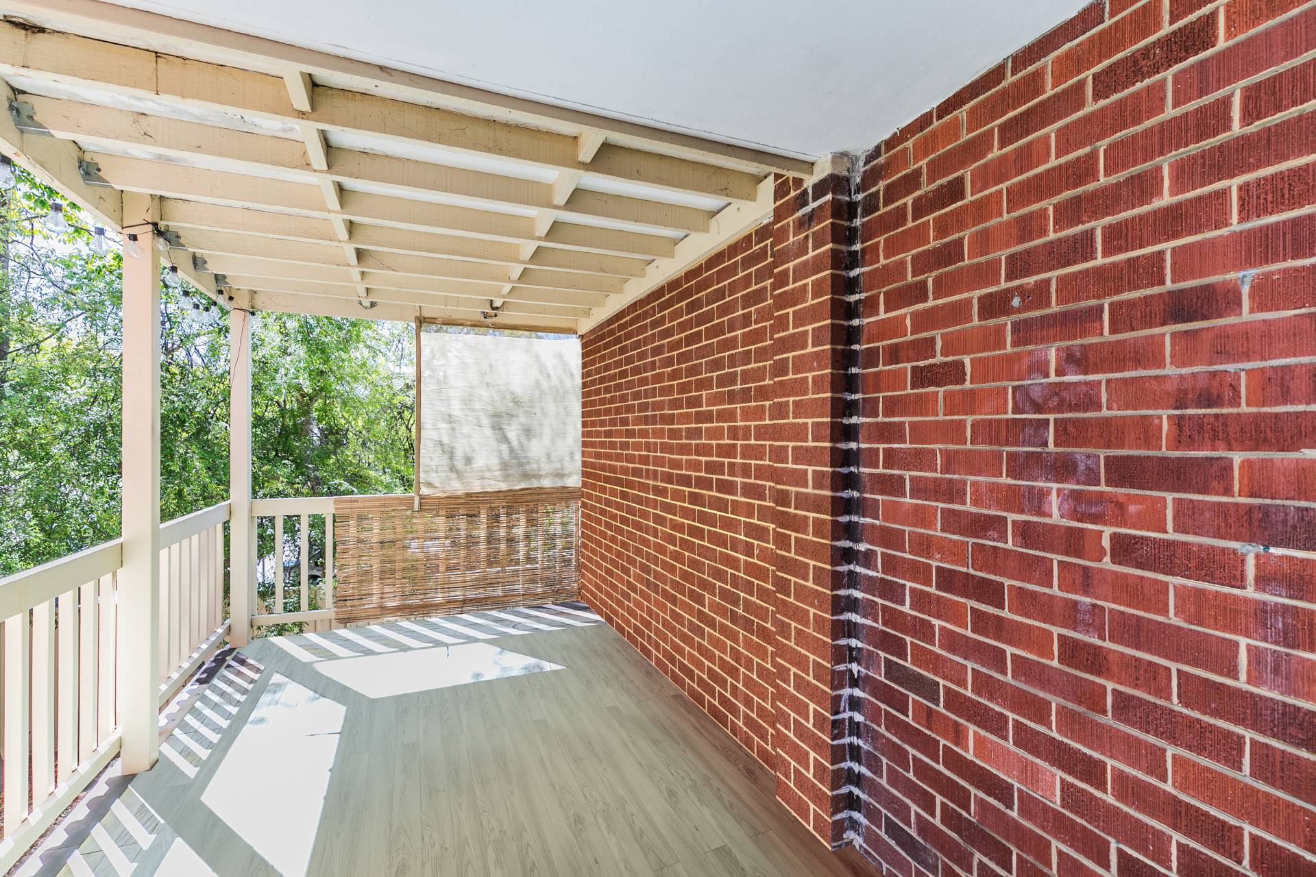 Balcony & Storeroom: Private balcony overlooking lush trees & Storeroom