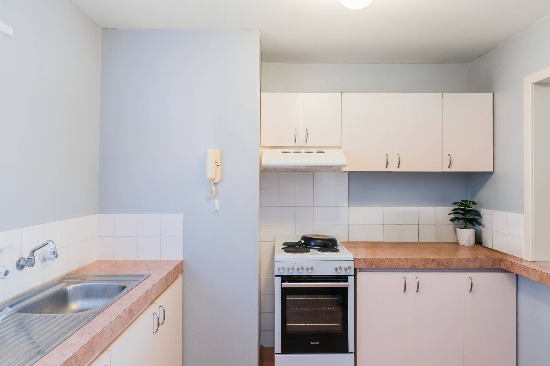Kitchen: Despite its size, this compact kitchen is cleverly designed to maximize efficiency. With space-saving solutions and smart organization, you'll find everything you need within reach