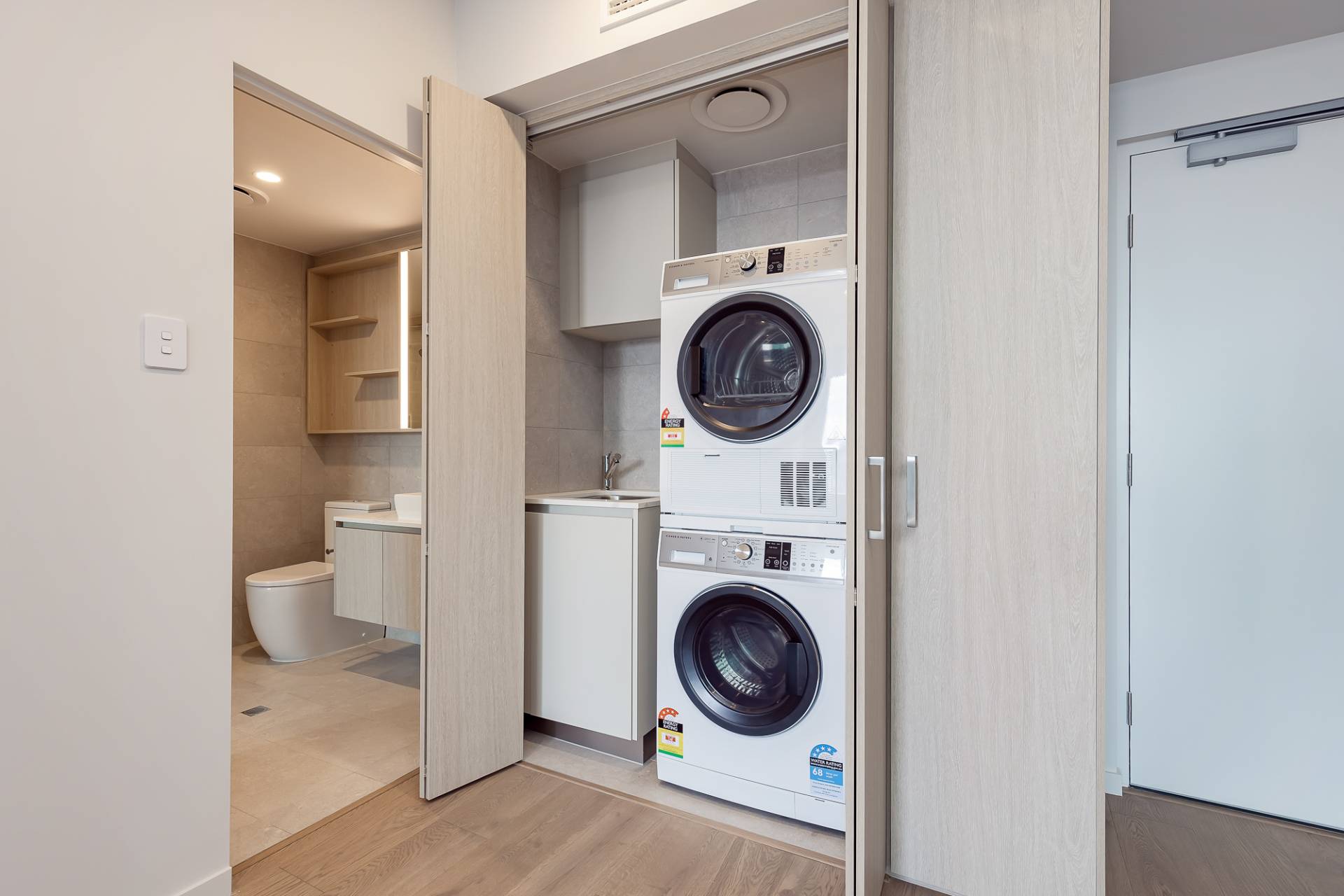 Enjoy the comfort and privacy of a generously sized bedroom, designed with modern finishes and ample natural light. The impeccably designed bathroom features high-quality fixtures and fittings. The fully equipped kitchen comes complete with a state-of-the-art dishwasher and fridge, perfect for culinary enthusiasts. Laundry needs are easily met within the comfort of your home with the included washing machine and dryer.