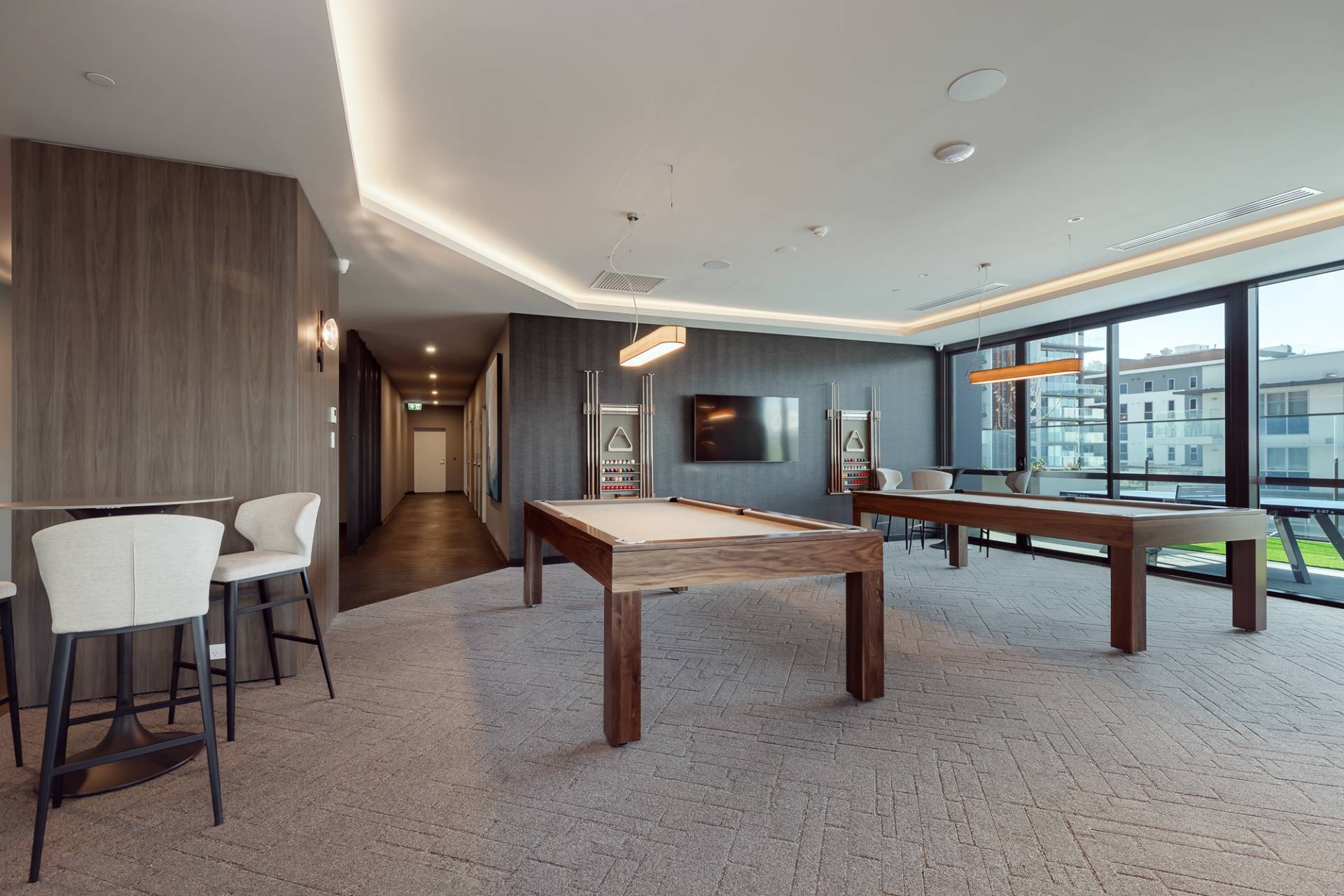 The open-plan living and dining area provides a versatile space for relaxation and entertainment, seamlessly connected to a private balcony. The apartment also includes a designated secure parking space for your convenience and peace of mind. Residents have access to premium facilities including a fitness center, swimming pool, and communal BBQ area, enhancing your living experience.