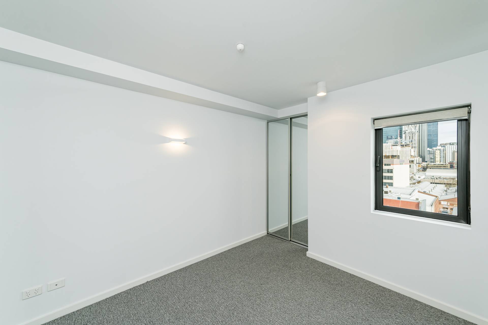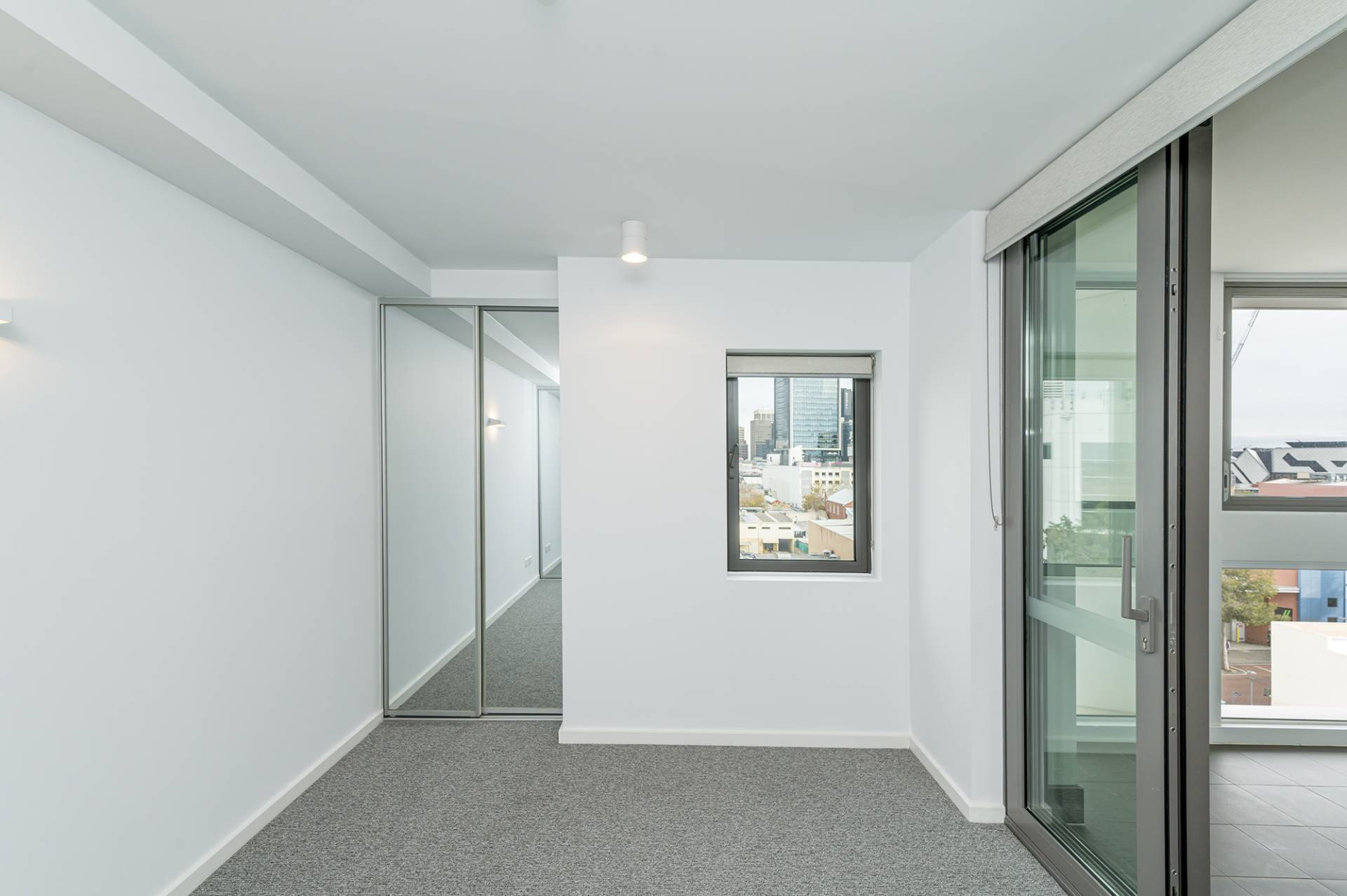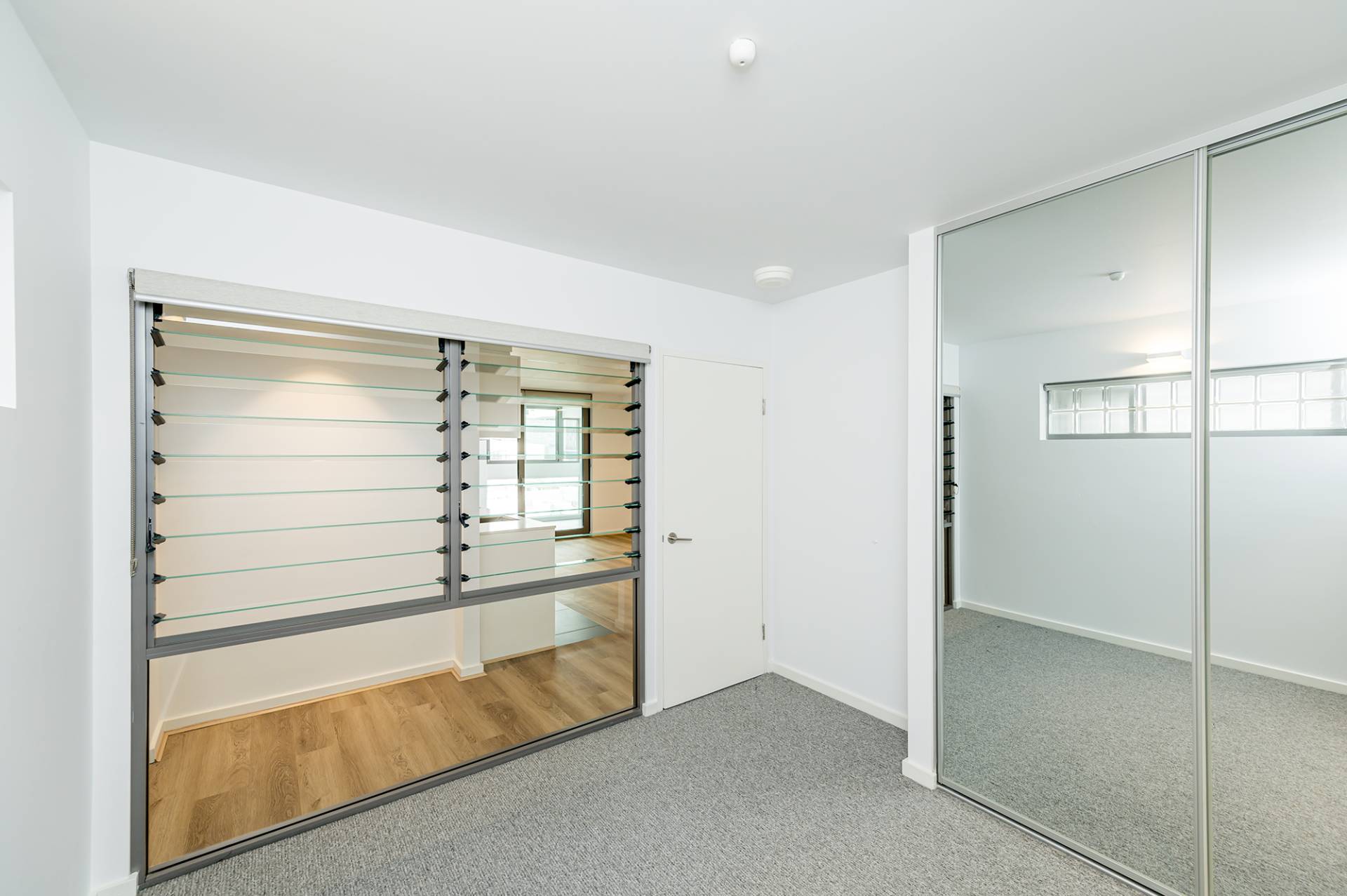 Carpeted bedrooms with sliding mirrored robes