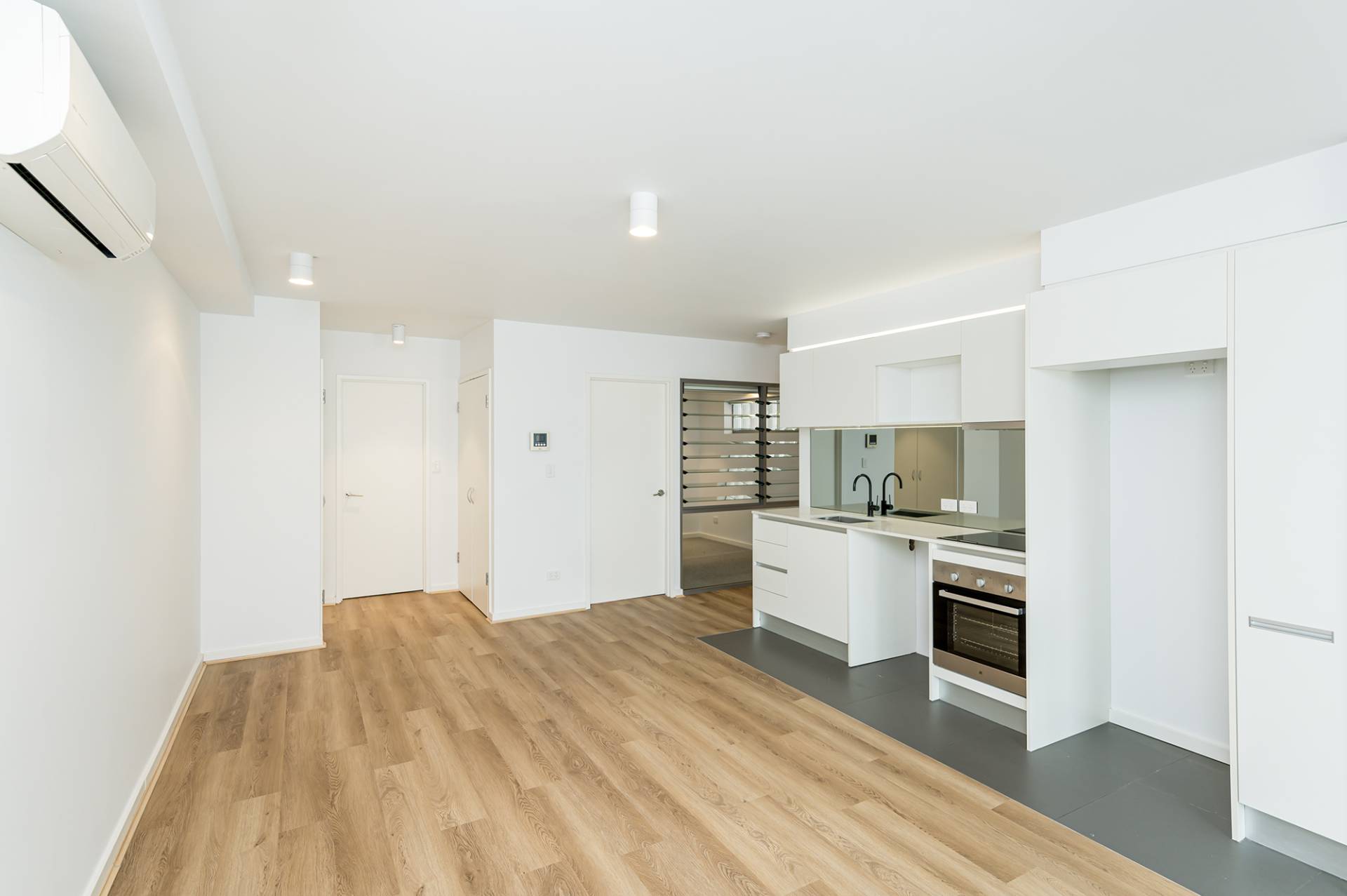 Split system reverse cycle air conditioning in living area