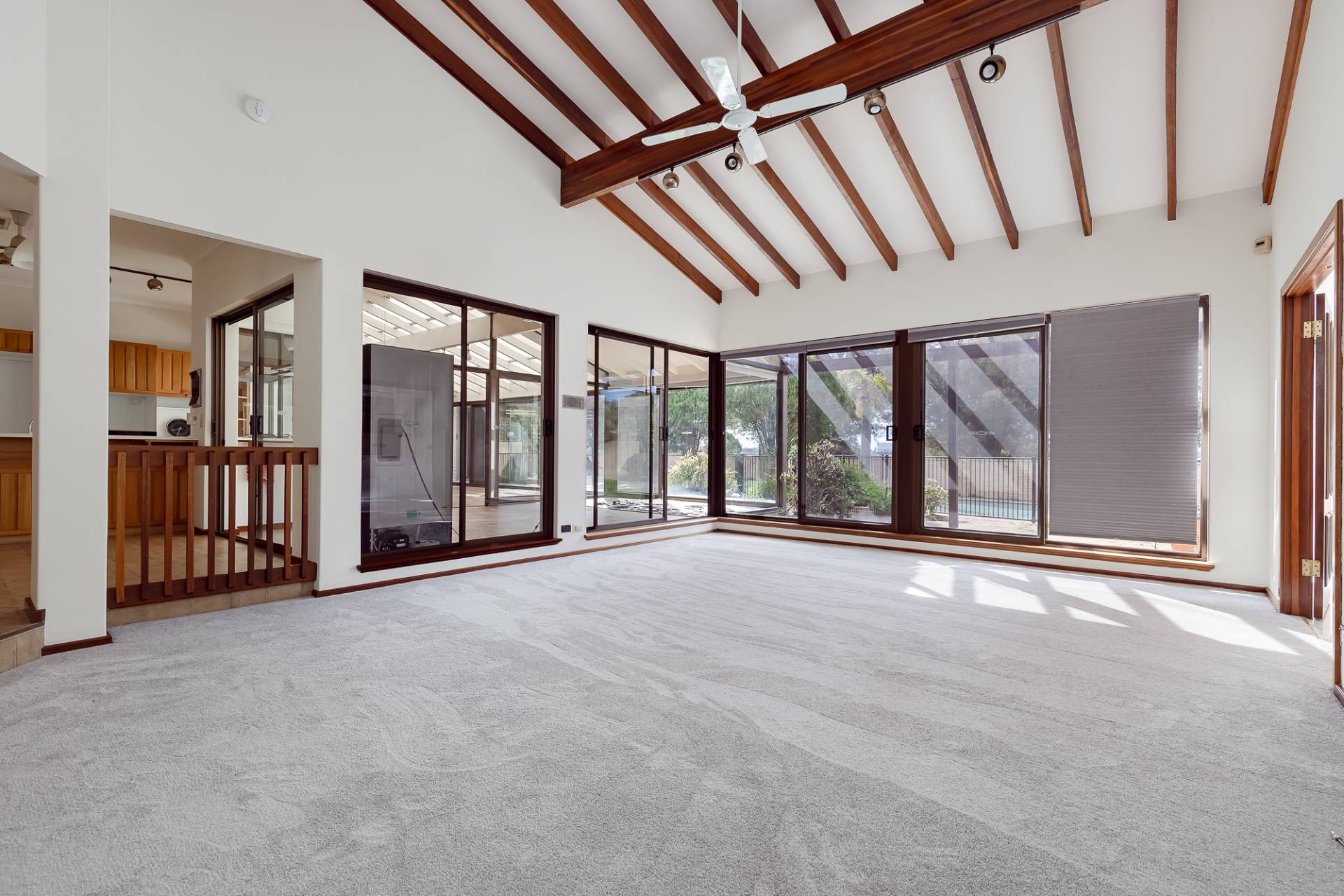 This home offers a variety of living spaces, including a sunken formal lounge room, a separate home office/activity room, a formal dining area, and a vast open-plan family lounge room. The kitchen and meals area are complemented by a brand new oven and dishwasher, perfect for culinary enthusiasts. A separate laundry with outside access and overhead storage adds to the practicality of this home.
