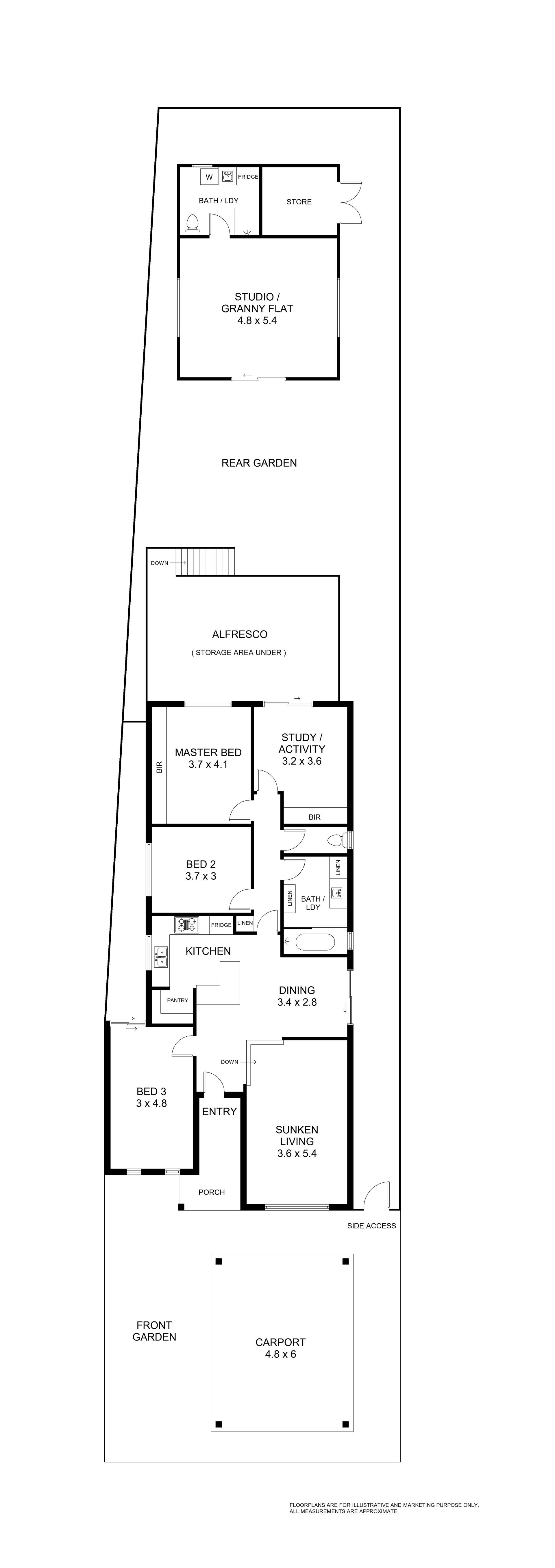 Within the main house there are 3 generously sized bedrooms, master incorporates ample built-in robes, a study or activity room and renovated bathroom. Located at the rear of the property is a fabulous granny flat/teenagers' studio or a possible Airbnb flat. The sunny north facing entertaining area featuring a timber deck is perfect for alfresco dining, weekend barbecues or simply unwinding in your private oasis. The secure back garden is ideal for children and pets to play safely.