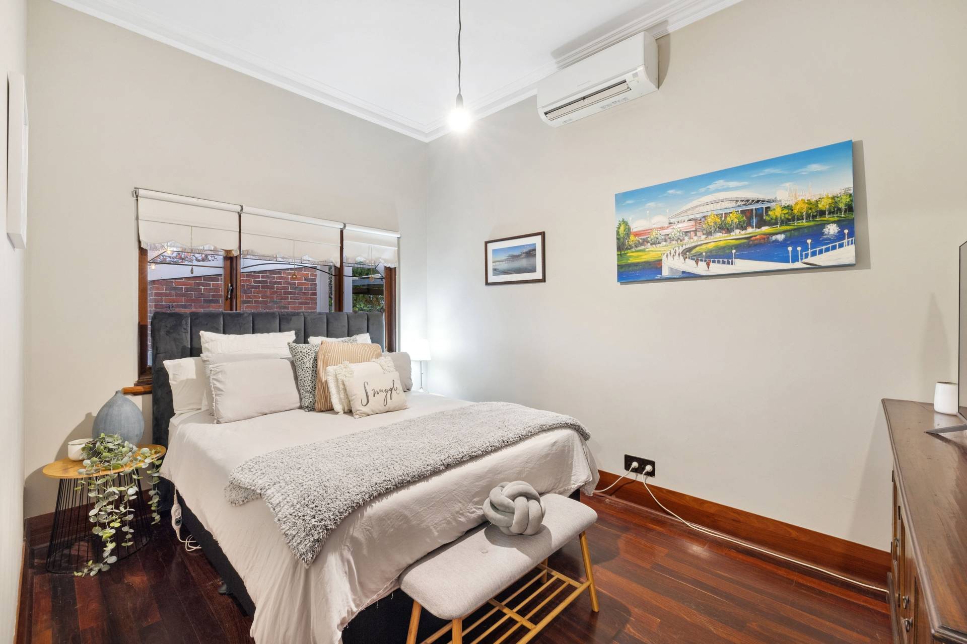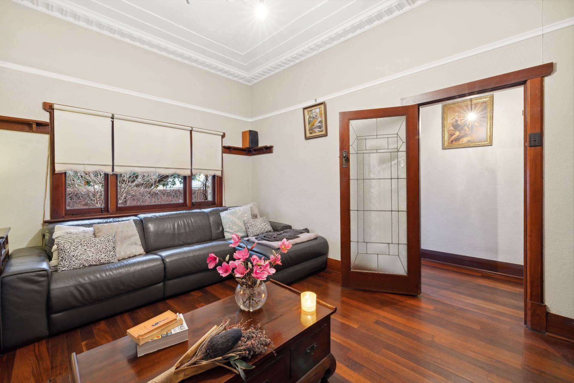 A cosy front living room offers the perfect space to wind down and relax, situated at the front of the property and featuring a gas fireplace, reverse cycle air-conditioning, ornate ceiling and large led-light windows overlooking the beautiful front terrace. The bedrooms are spacious in size and offer polished jarrah floorboards, high ceilings and large windows bringing in an abundance of natural light. The renovated bathroom is complete with contemporary fixtures, nice tiles and waterfall shower. Other features include study nook, home office, extra wide hallway, 3x reverse cycle split system air-conditioning units, separate laundry and second bathroom separate to the residence, grassed area, front porch.