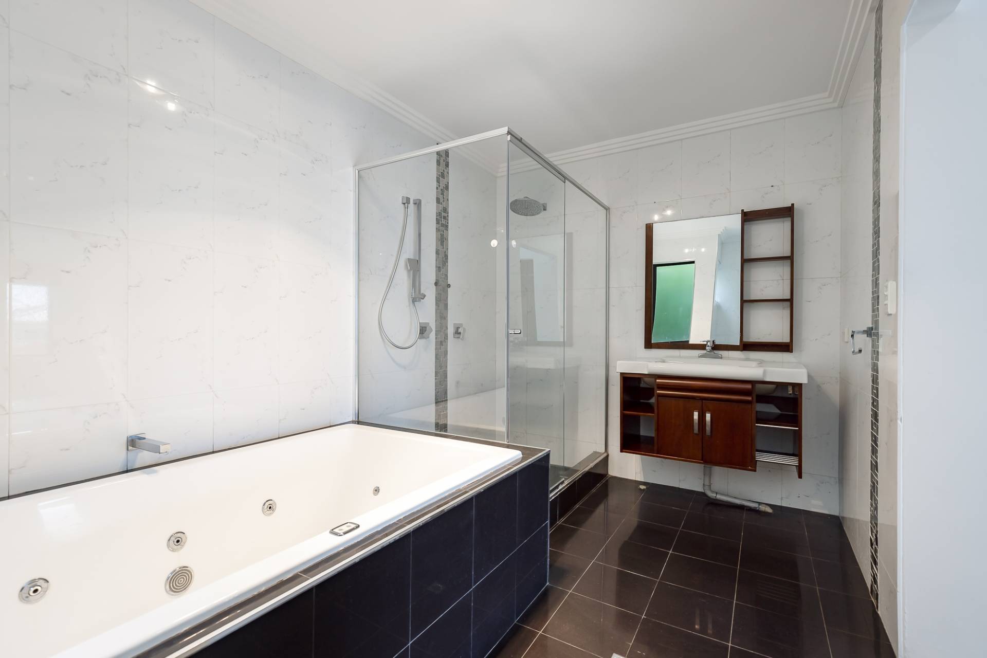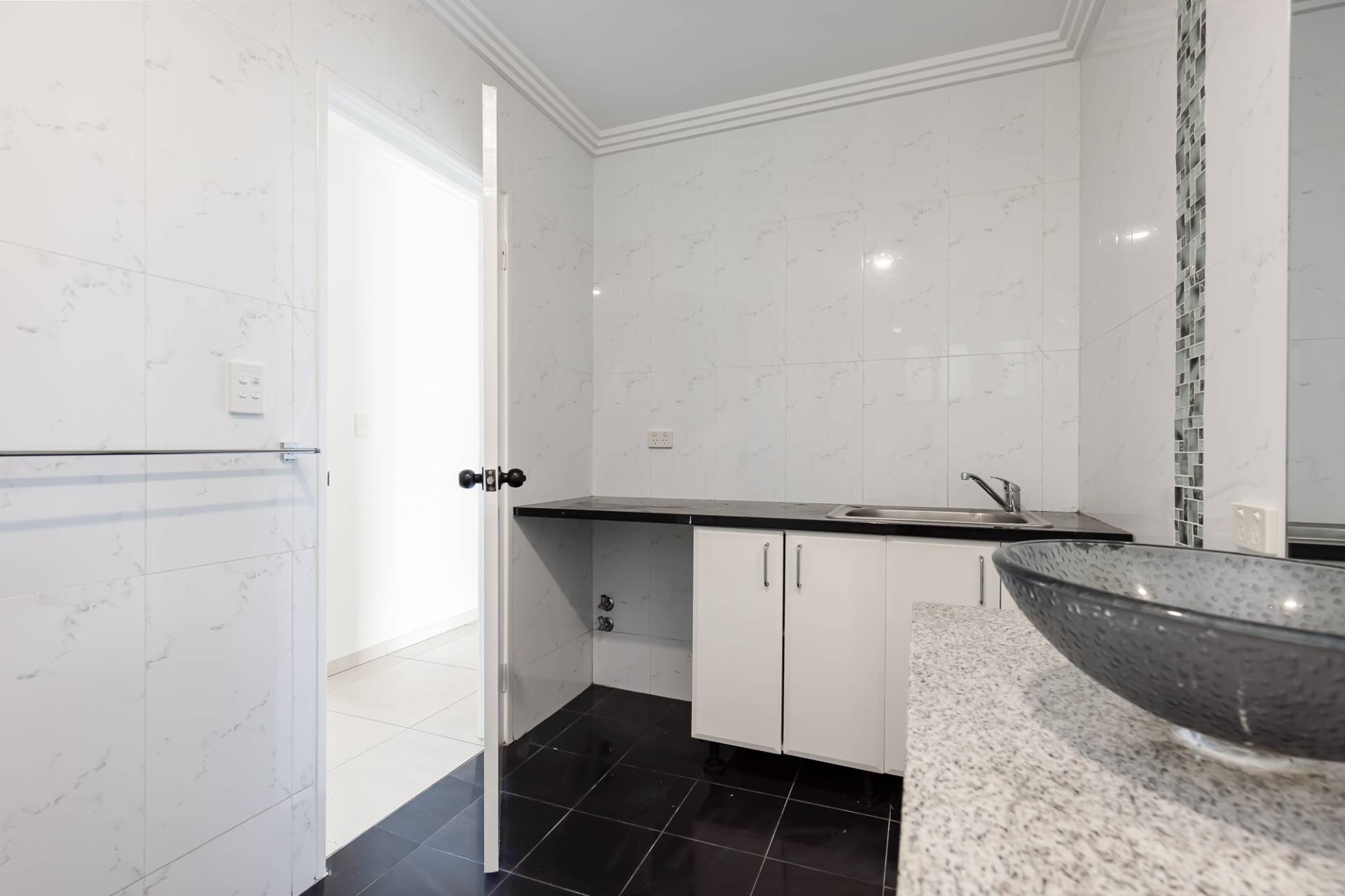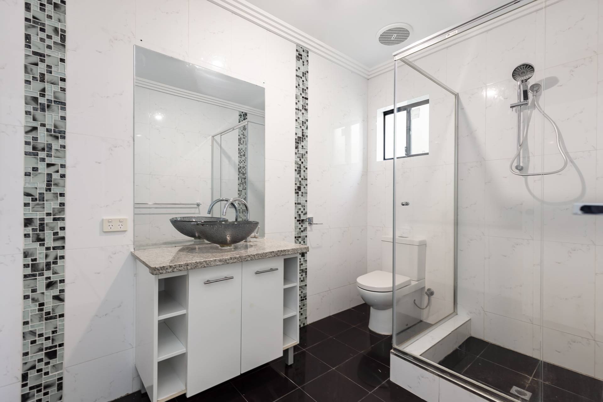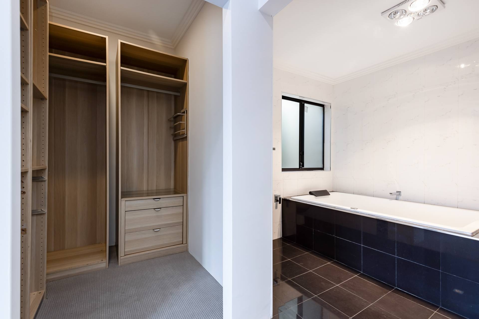 The expansive master bedroom boasts high ceilings, dual walk-in robes, and a spacious en-suite with floor-to-ceiling tiles, a bath, and a double shower. Located at the opposite end of the home for added privacy, Bedrooms 2 and 3 are generously sized Queen rooms with large double robes, and the stylish main bathroom also features wall-to-ceiling tiles.