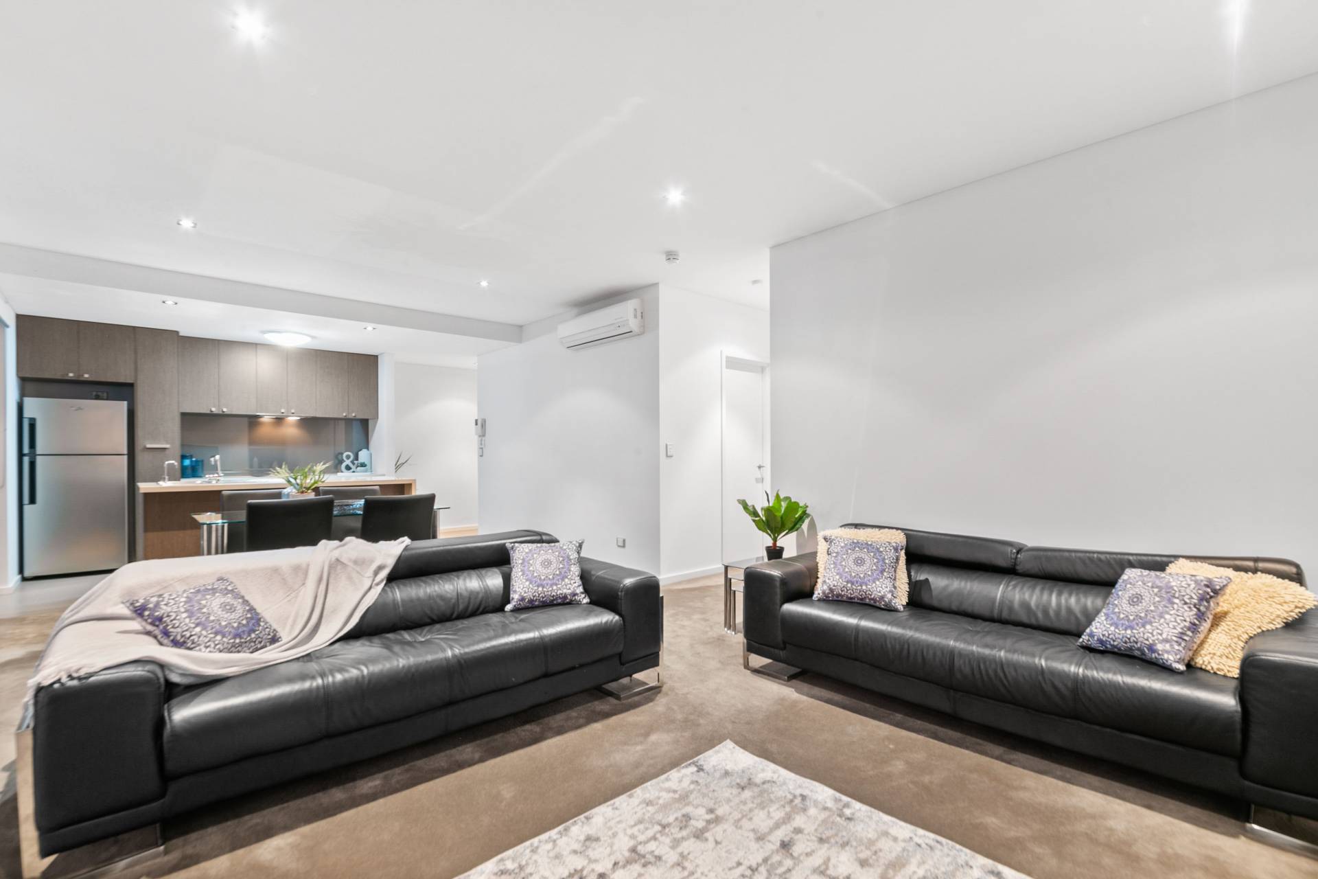 The stunning, partially furnished and low-maintenance apartment is one not to be missed! The modern kitchen is a culinary delight, featuring sparkling stone countertops, glass splashbacks, a ceramic glass cooktop, a filtered water tap, and an island breakfast bar perfect for casual meals ideal for any aspiring Master Chef! Both bedrooms are generously sized with full-height mirrored robes. The master bedroom suite has its own private balcony and an intimate ensuite bathroom with a shower, stone vanity, and floor-to-ceiling tiling. The main bathroom doubles as a laundry, fully tiled and efficiently designed with a shower, toilet, laundry area, and stone vanity.