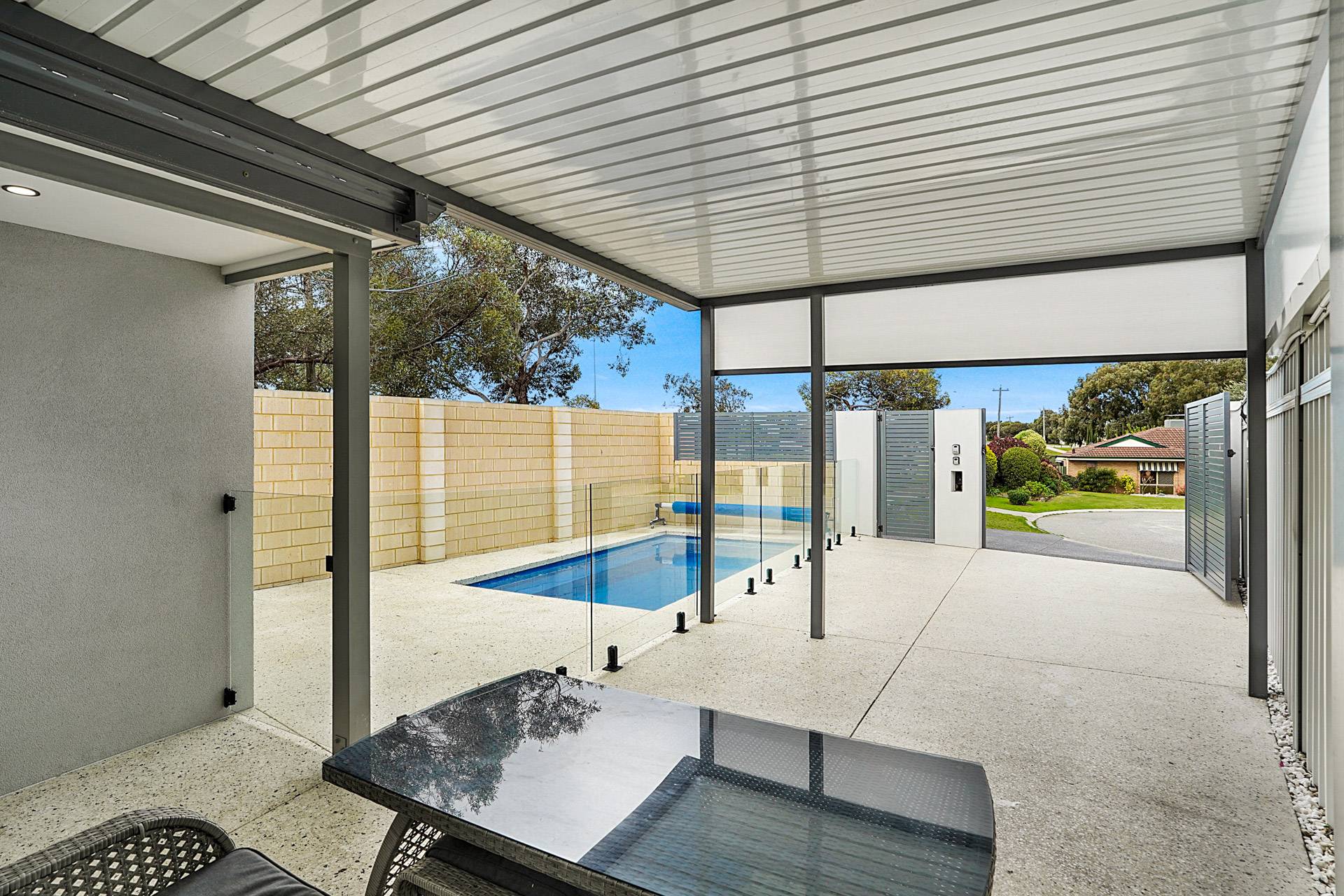 - Walk upto the home and you'll be greeted with a spectacular outdoor entertaining area lined with honed concrete floors and overlooking a relaxing, heated pool that doubles as a spa. The outdoor alfresco area is great for entertaining and depending on your needs, could instead be used as a carport.
