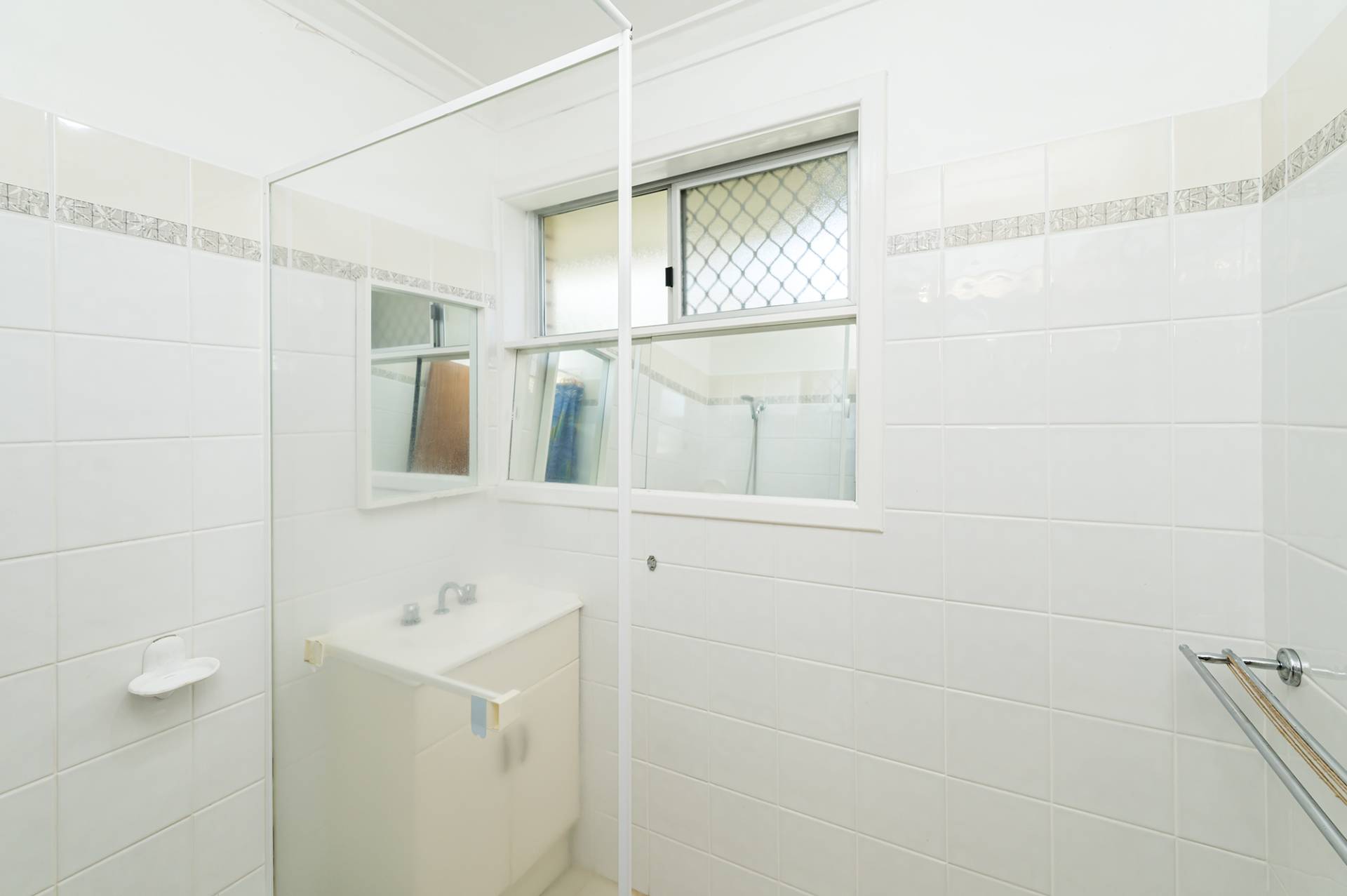 A modern and bright bathroom with glass shower screen accommodates both bedrooms while a separate laundry includes sliding cupboards and access to the exterior of the home. Step out onto an enclosed sunroom/verandah with glass louvres overlooking an expansive garden of lawn and established garden beds — a fabulous space for kids and family pets to play!