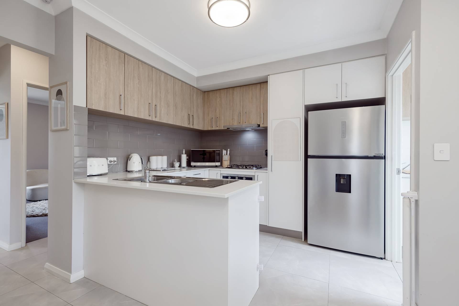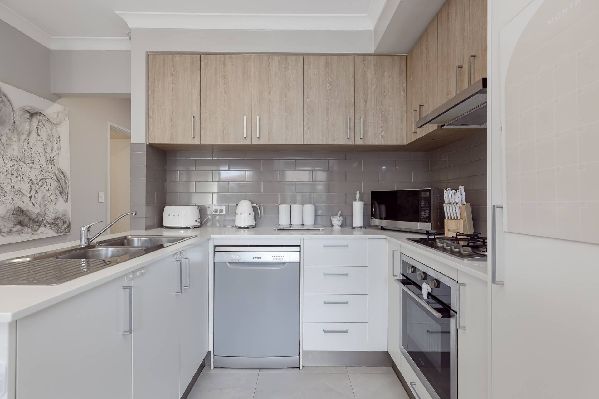 • A well-appointed kitchen featuring ample bench and cupboard space, a breakfast bar, and views of both the indoor and outdoor living areas