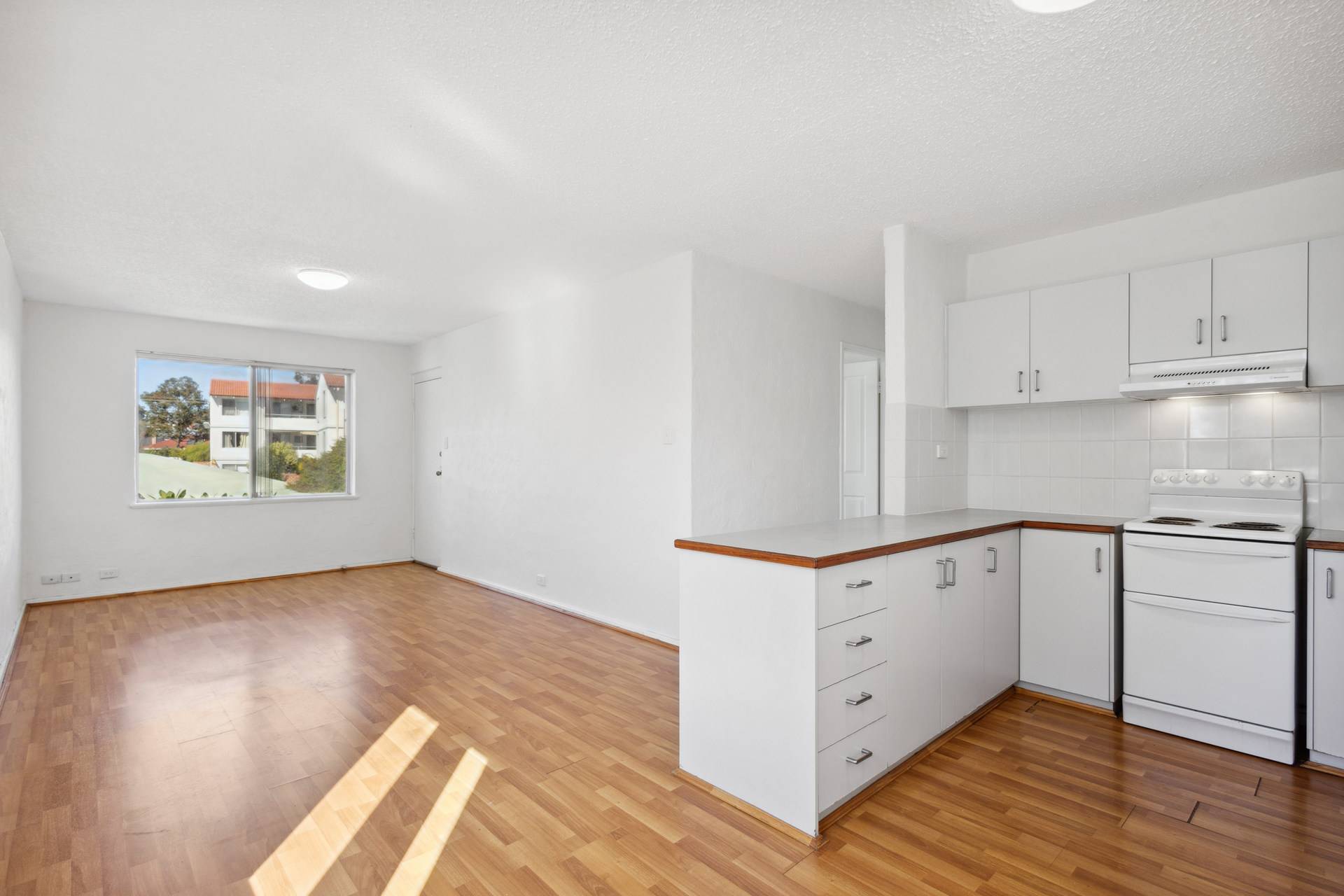 1st floor apartment featuring 2 bedrooms, open plan lounge/living and parking for one car.