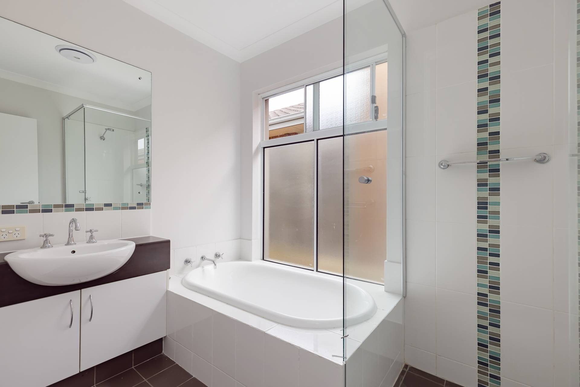 All bedrooms are equipped with built-in robes, while the master bedroom includes a massive walk-in wardrobe. The home has two well-appointed bathrooms, with the main bathroom featuring a large shower and double sinks, and a separate toilet room for added convenience.