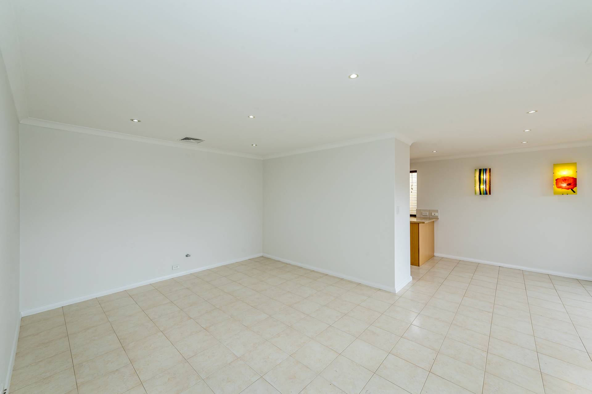 Spacious tiled living area with gas bayonet