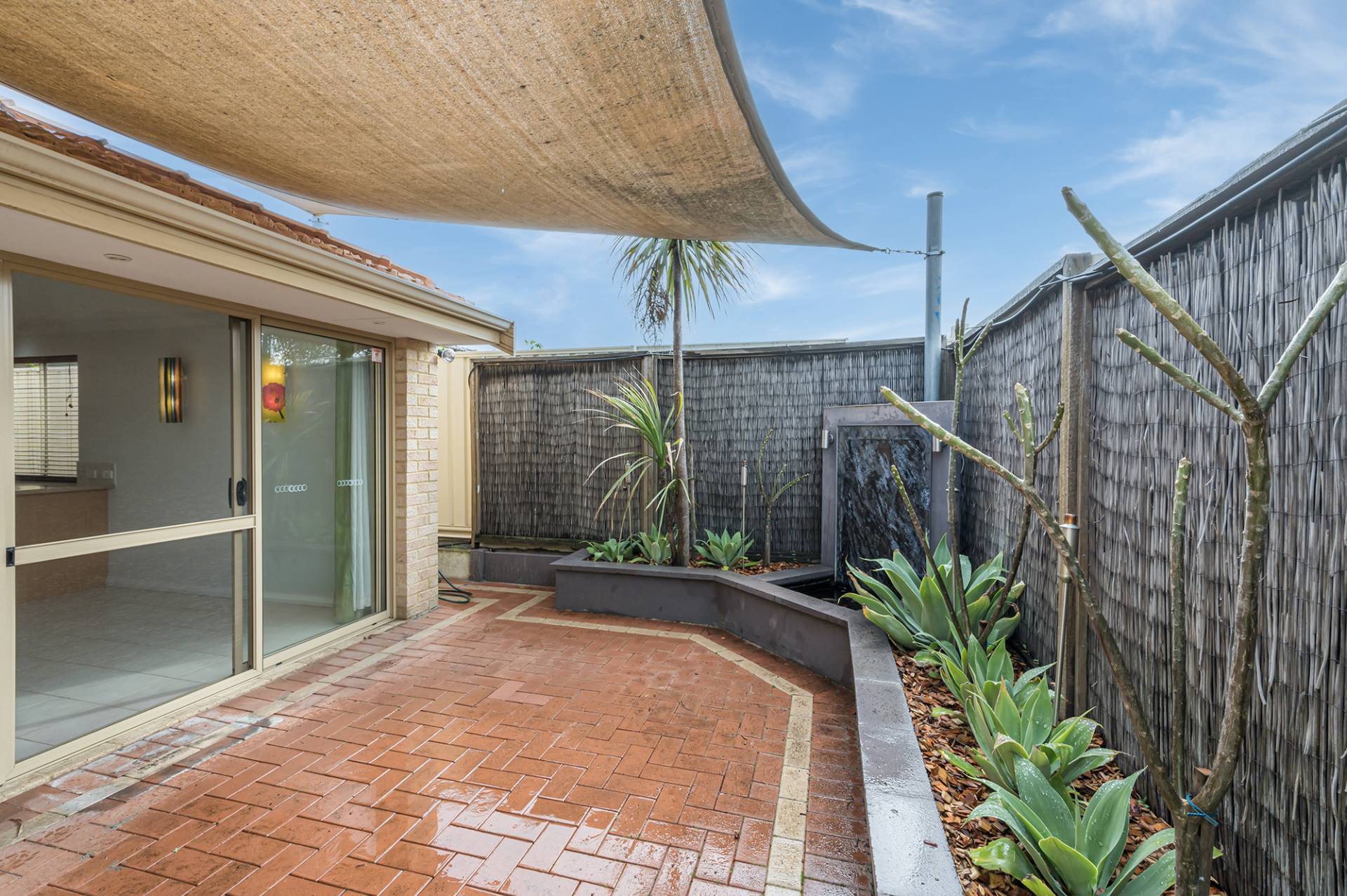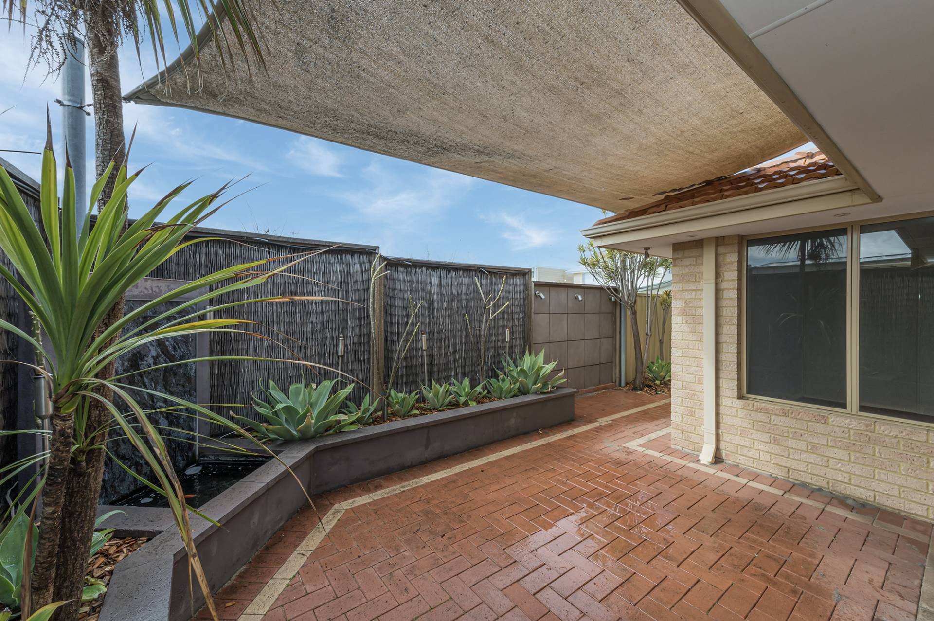 Open up your siding doors and step out onto a paved and private courtyard, a terrific alfresco space to enjoy outdoor dining, BBQ's, a casual weekend reprieve to relax and unwind with a glass of wine and a good book surrounded by a high fence and raised beds of Frangipanis and Agave plants. Enjoying outdoor lighting and a pond, this is a lovely space to entertain too and easily large enough to accommodate outdoor dining furniture.