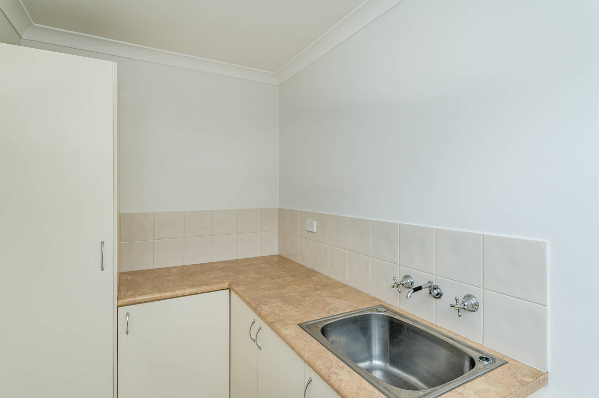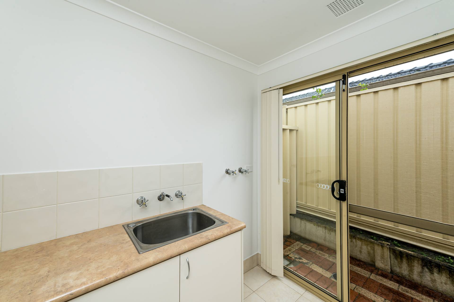 Separate laundry with linen press, sliding doors to exterior