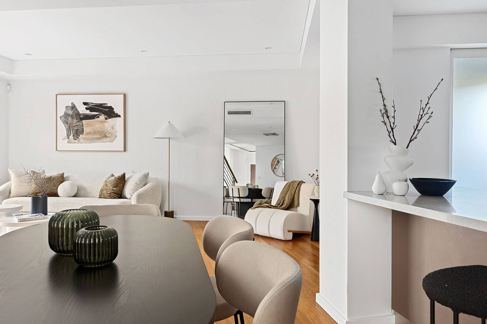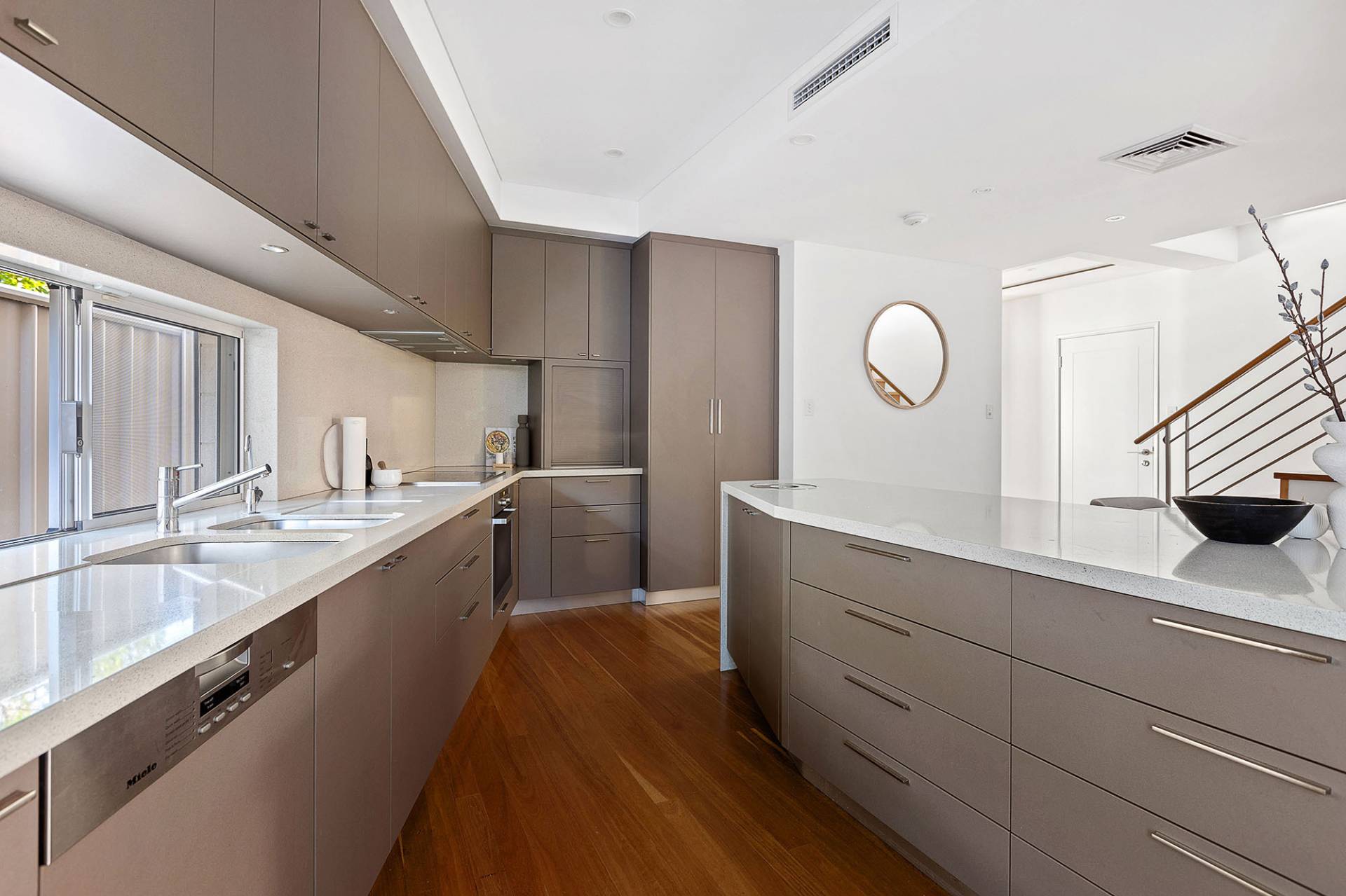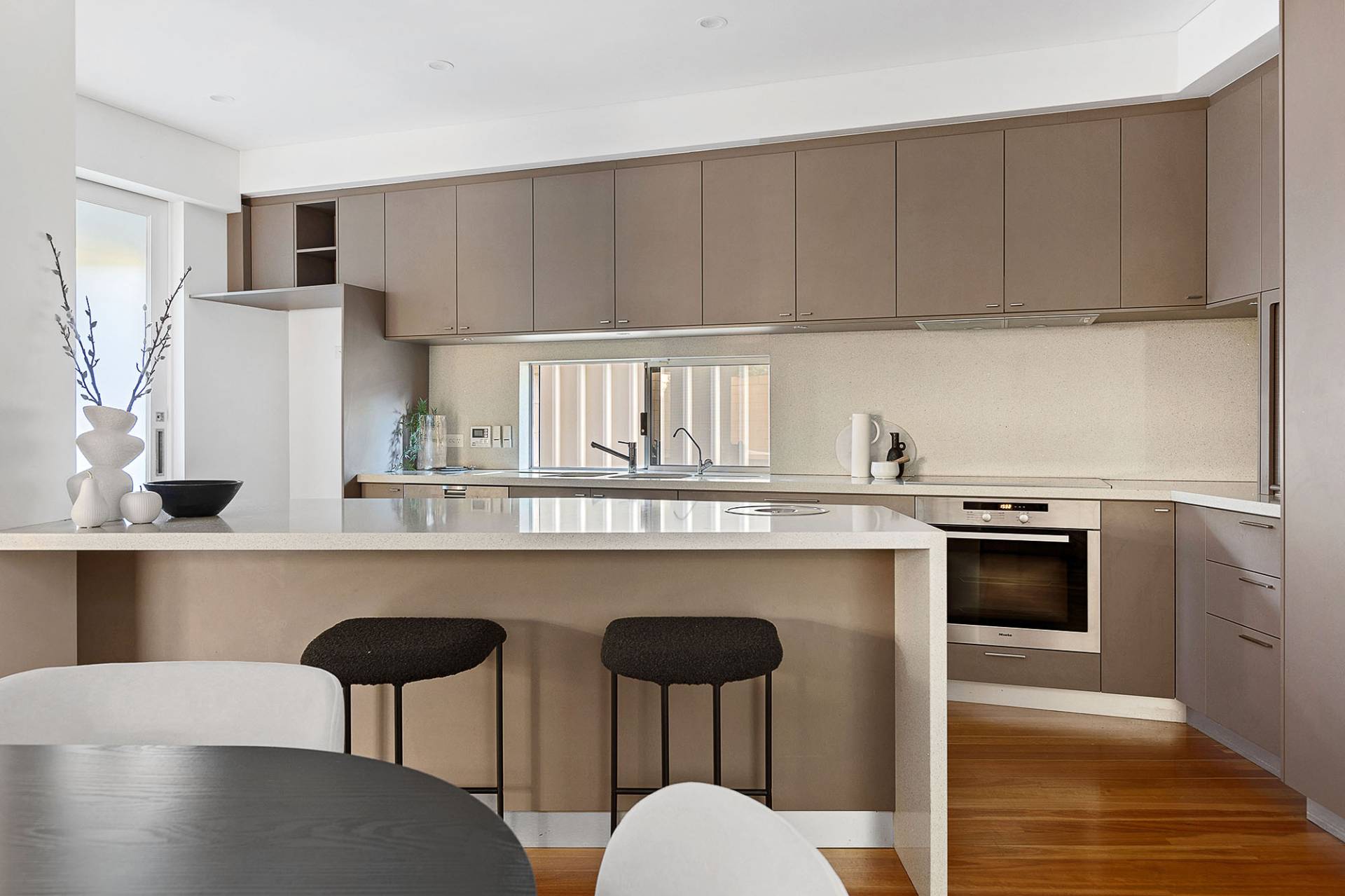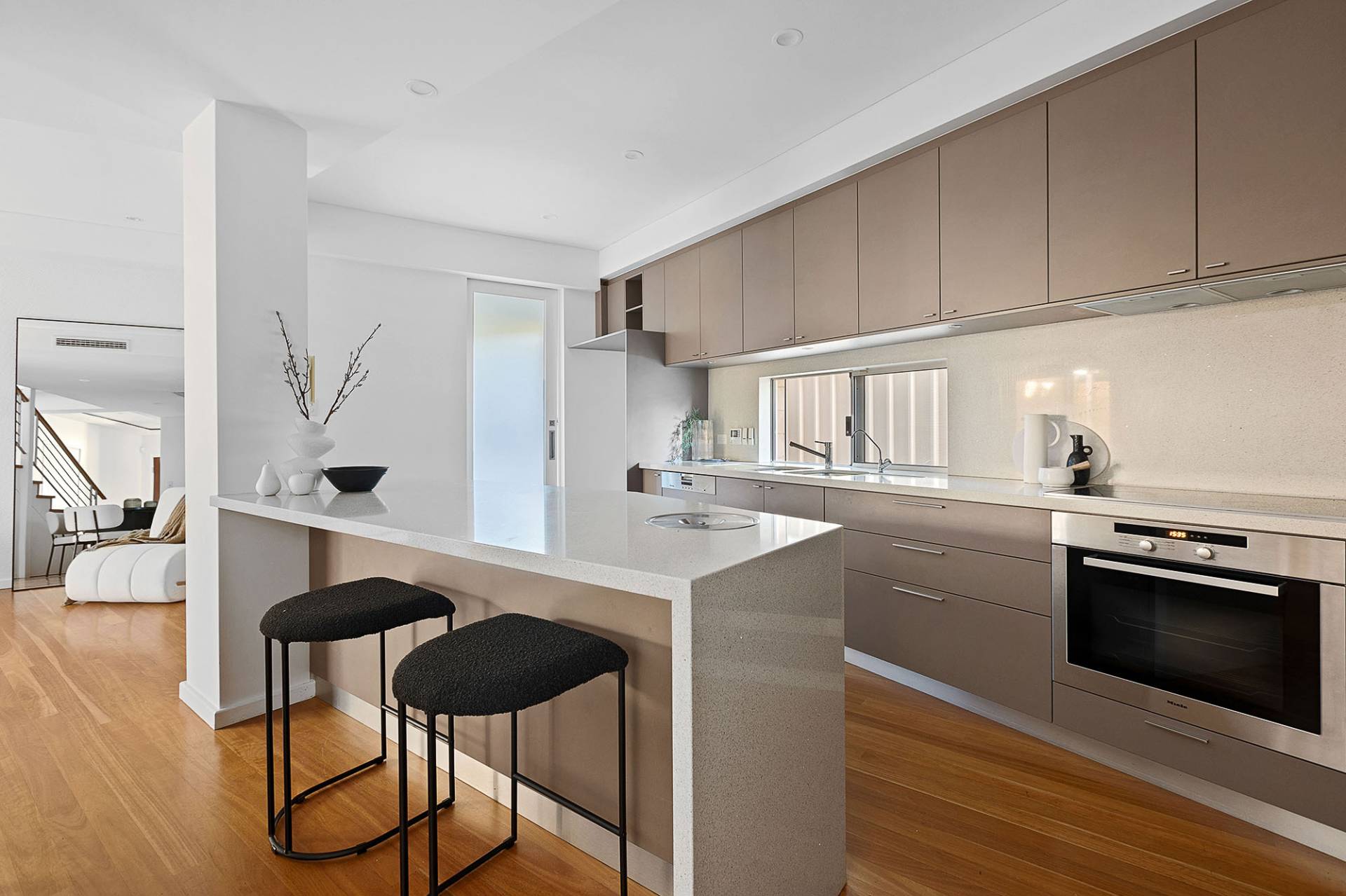 • Gourmet Kitchen: The heart of the home boasts a spacious open-plan kitchen with stone benchtops and premium Miele appliances, flowing seamlessly into the dining and living areas.