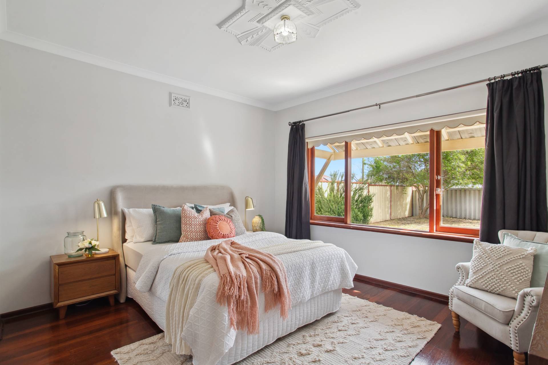 Boasting polished jarrah floorboards and high ornate ceilings this home oozes with classic Mount Hawthorn charm and timeless features. Designed for both comfort and style, the home features two separate living areas, perfect for relaxing or entertaining guests. The well-appointed kitchen offers plenty of space for culinary creations while the classic fireplace in the front living room adds a cozy touch for those cooler evenings. All bedrooms are spacious in size and feature jarrah floorboards and an abundance of natural light. The master bedroom is sure to impress offering an ensuite, spacious walk-in robe, and large window overlooking the back garden.