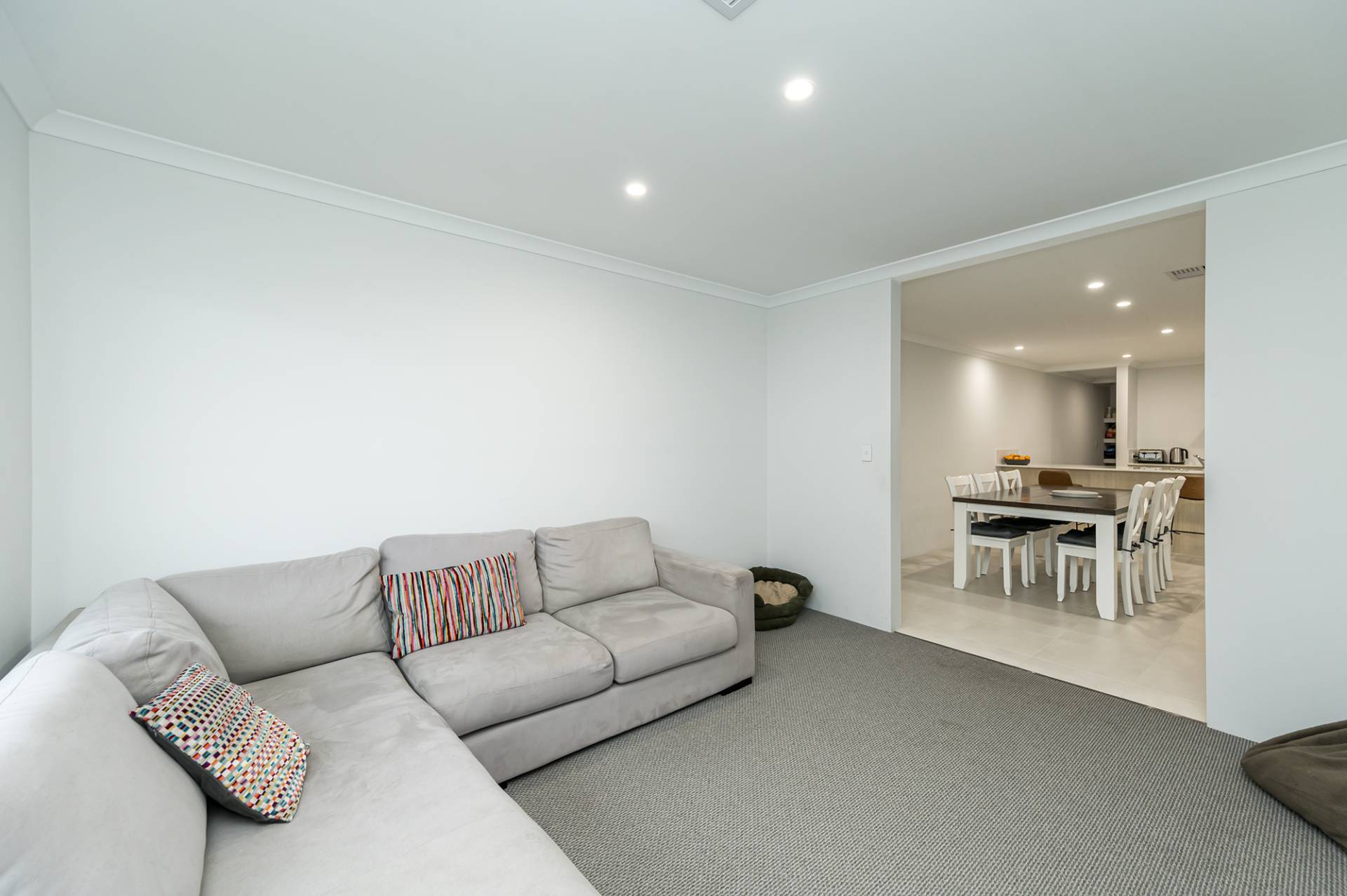 The dining area provides a welcoming spot for family meals, while the spacious living area, with easy flow to the alfresco via sliding doors, offers a seamless indoor-outdoor lifestyle. An additional theatre room or study ensures flexible living for work, study, or entertainment.