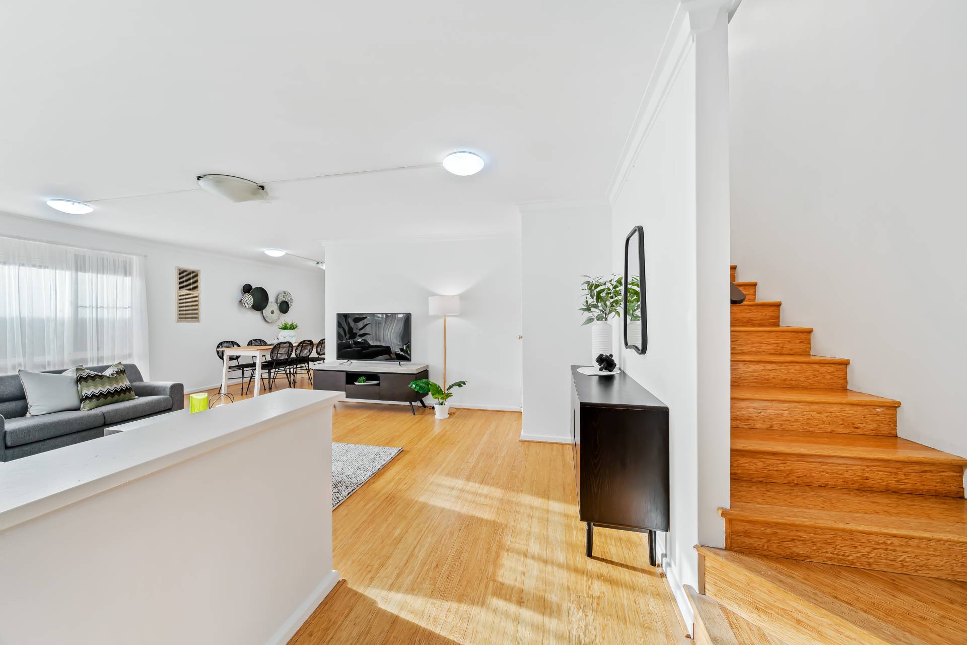 Functional living is a breeze thanks to a convenient ground floor toilet, a laundry area with a benchtop and storage, and even under-stair storage for added practicality. Upstairs, three spacious bedrooms, each with built-in robes and ceiling fans, offer a tranquil retreat. The master bedroom boasts the added convenience of direct access to the bathroom.