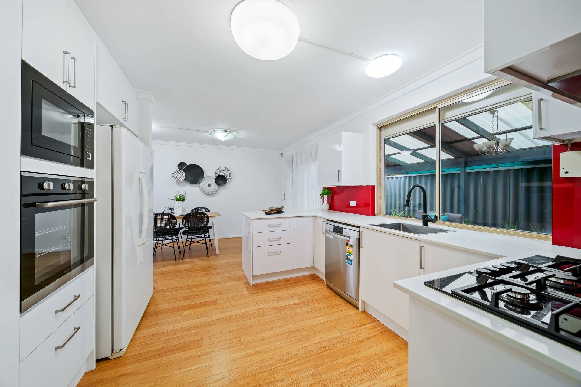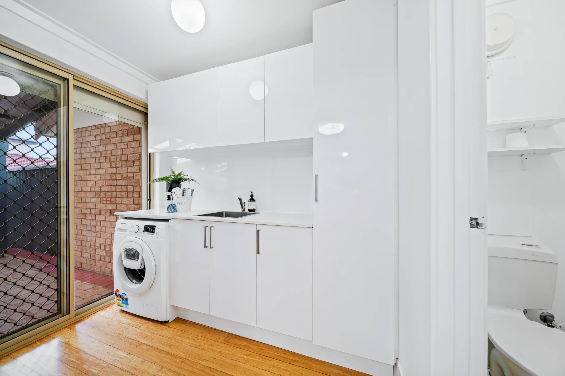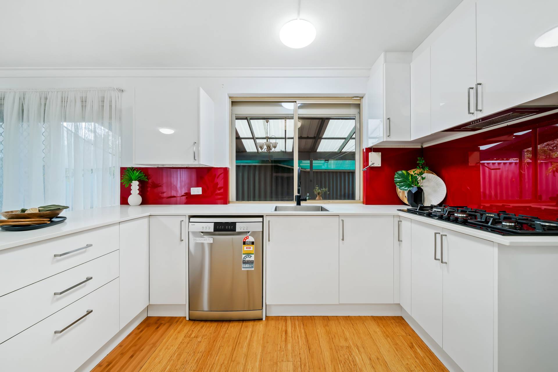 Inside, the modern design continues with security screens throughout, ensuring your safety and privacy.  Roller shutters provide additional peace of mind, while a split-system reverse cycle air conditioner keeps you comfortable year-round. The heart of the home is the stylishly renovated kitchen, featuring a dishwasher, sleek benchtops, and plenty of storage. It's a chef's dream, with modern appliances and a spacious layout.
