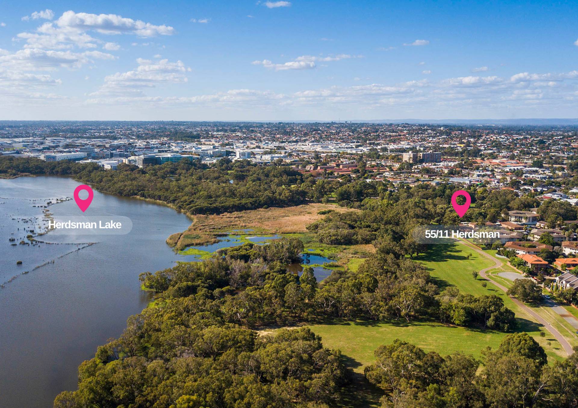 Welcome to 55/11 Herdsman Parade, Wembley! This original two-bedroom townhouse is perfectly positioned to offer a lifestyle of convenience and leisure. Located in the heart of one of Perth's most sought-after suburbs, this property backs onto Herdsman Lake and sits between the vibrant Cambridge Street & Glendalough precincts, home to a variety of bustling cafes, popular restaurants, and boutique shopping.