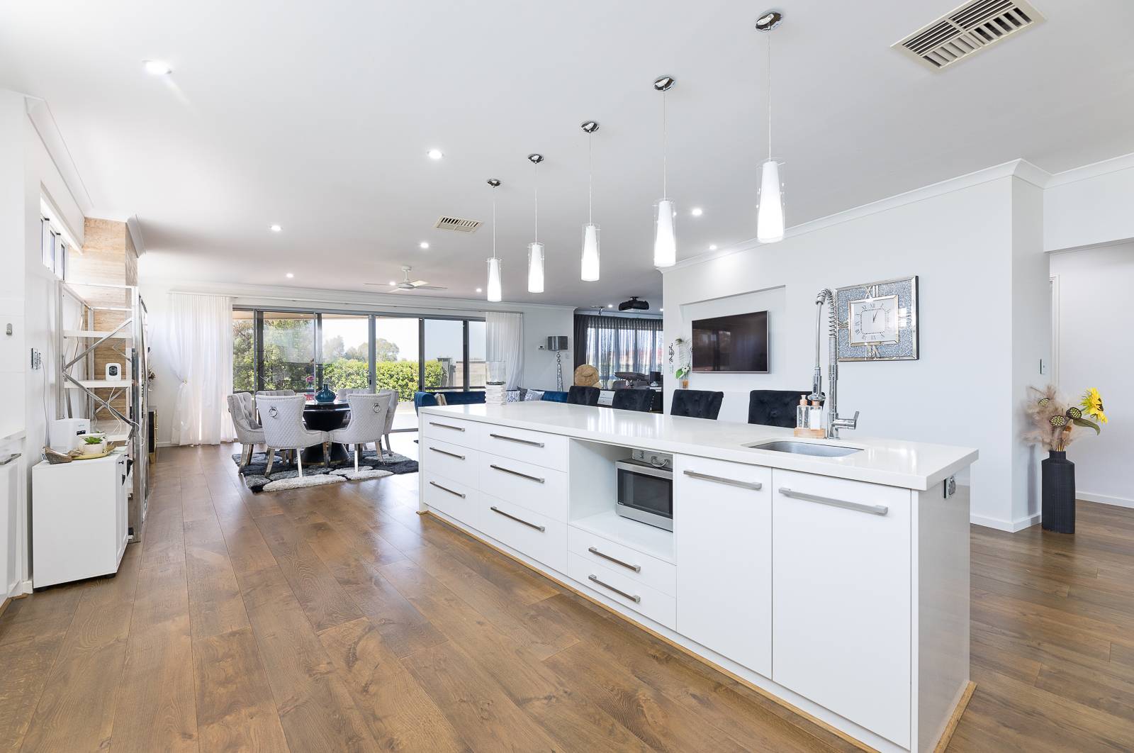 • Open-plan living: Embrace the spaciousness of a huge, light-filled open-plan kitchen, dining, and family area, ideal for both intimate gatherings and grand celebrations.