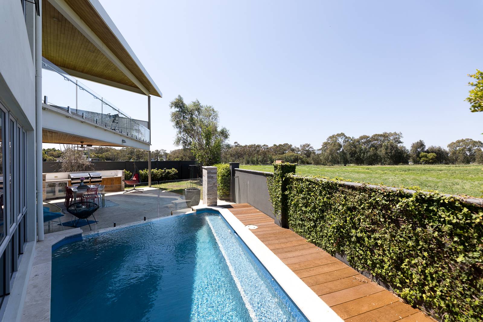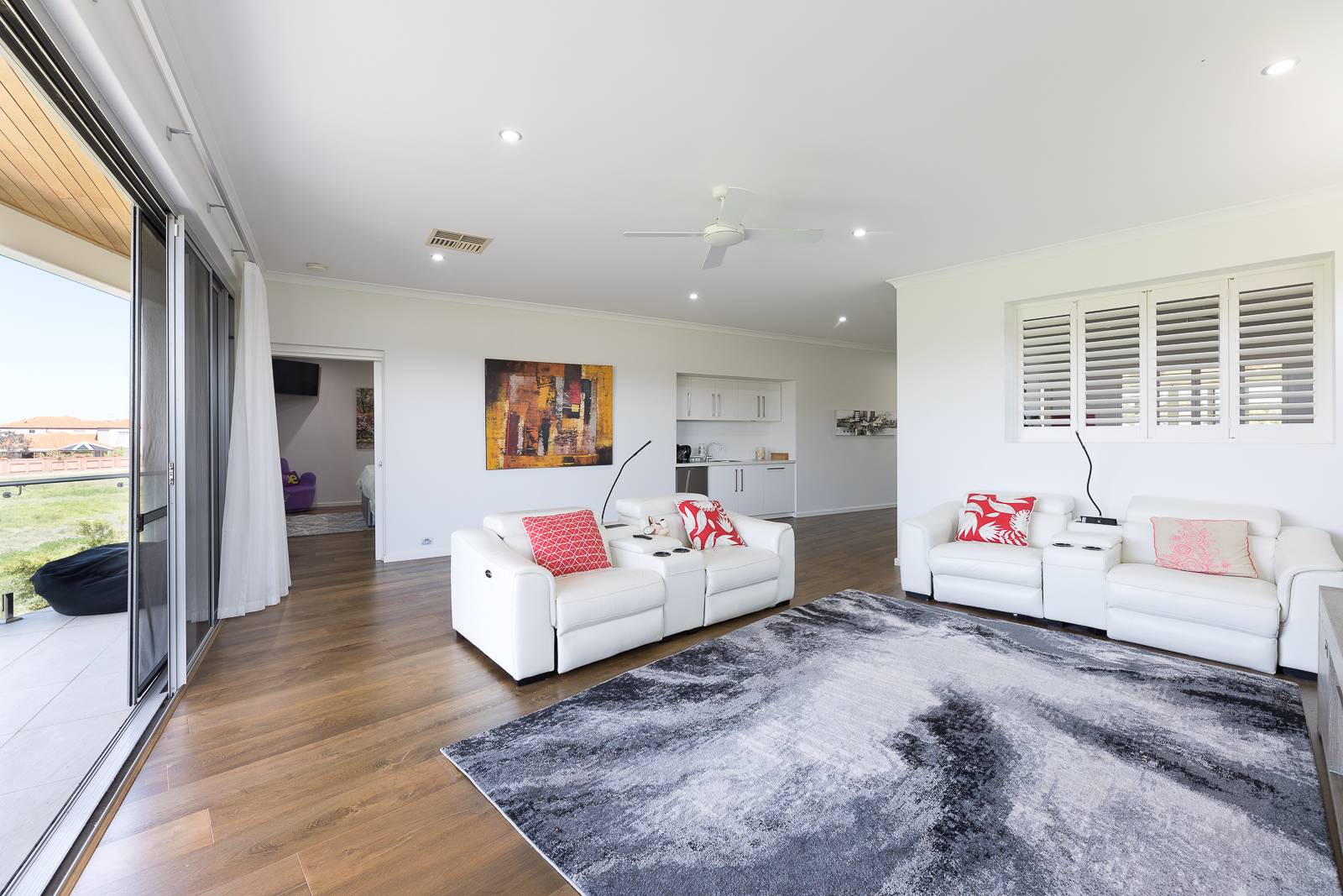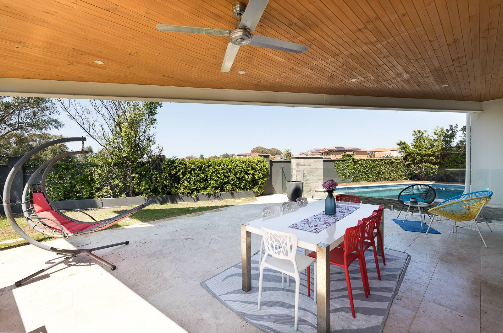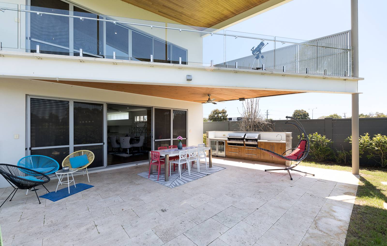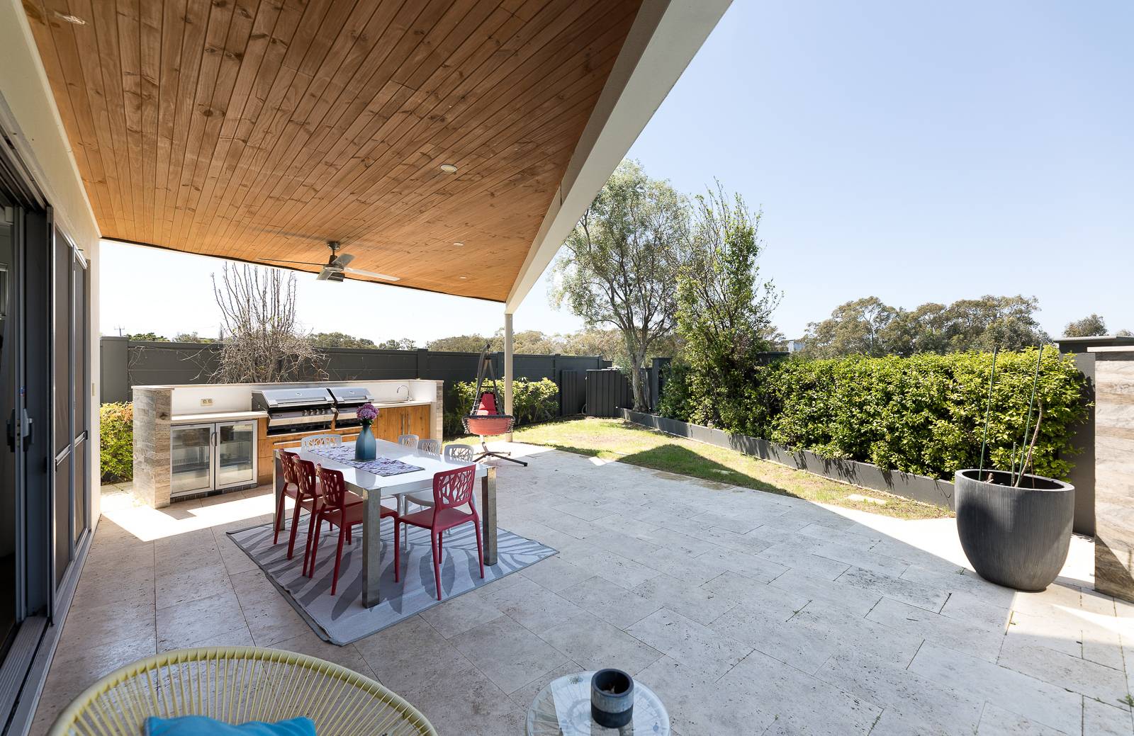 • Outdoor oasis: Step out to a magnificent rear alfresco complete with a lined ceiling, a fan, and a built-in stone kitchen, perfect for al fresco dining and entertaining.