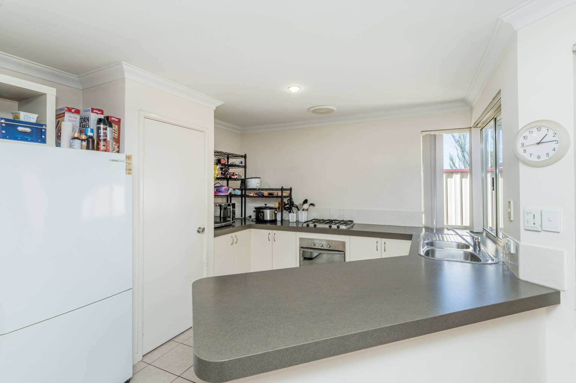 Nestled at the back of the complex, 28/100 Great Northern Highway features three bedrooms and two bathrooms. Upon entering, you're greeted by a private entrance that leads into the main living area. The property features tiled flooring and ducted evaporative air conditioning, all wrapped in a warm color palette. The open-plan kitchen and living area invites natural light through expansive windows, making it a cheerful spot for both cooking and entertaining. The kitchen is well-appointed with a dishwasher, 600mm gas stovetop oven, built-in pantry, and a window that overlooks the backyard and rear entertainment area.