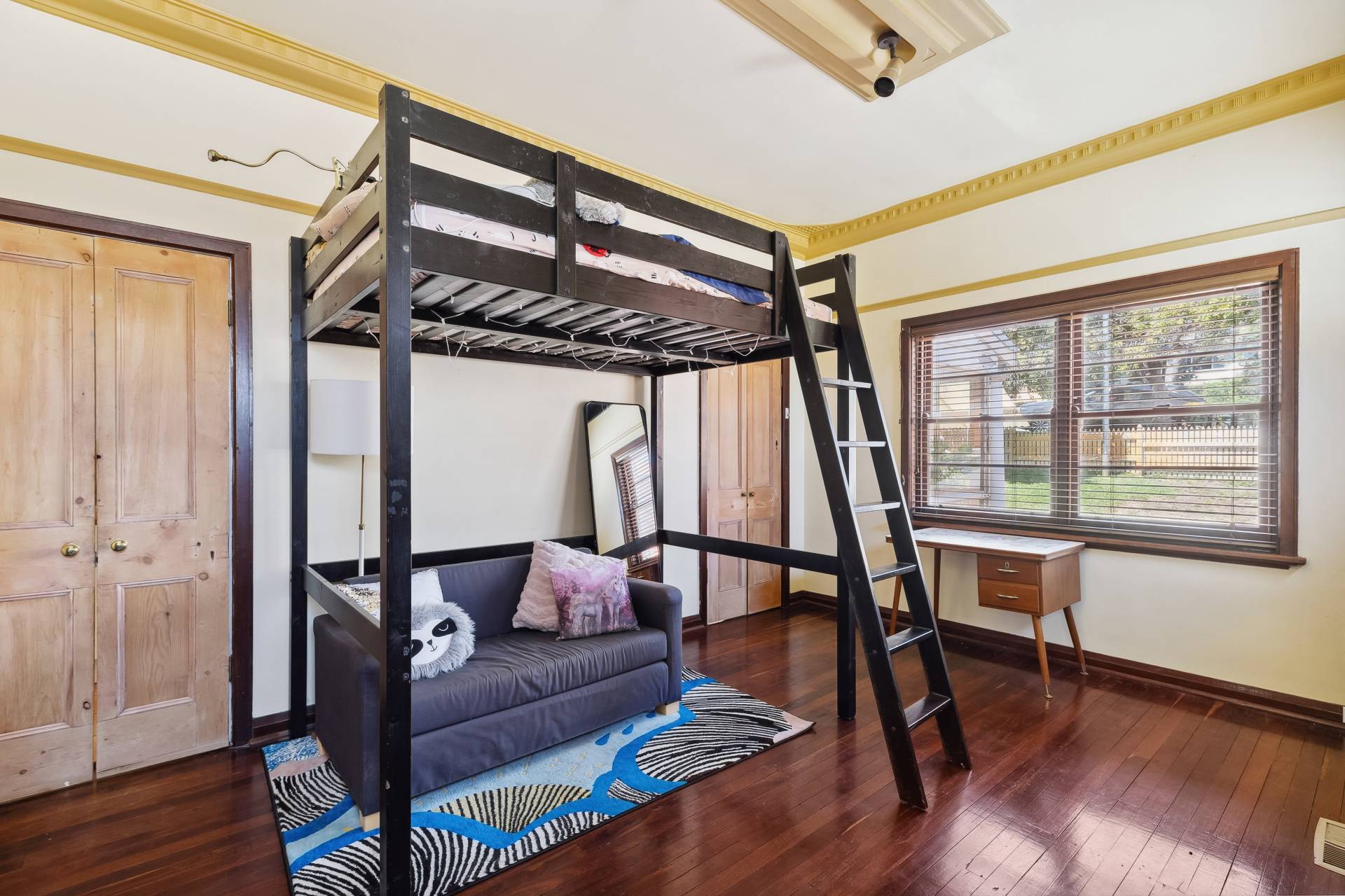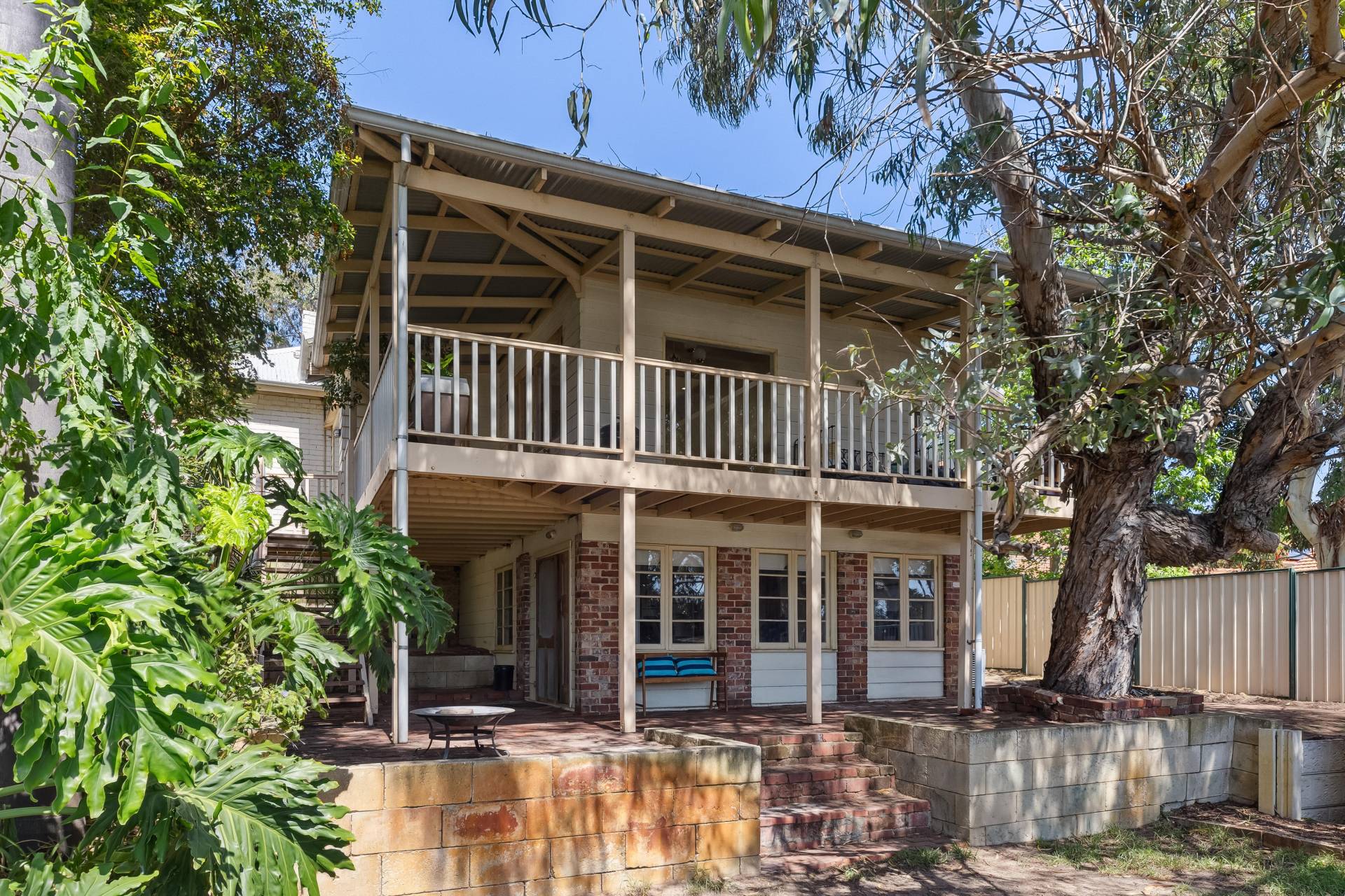 Stairs from the balcony lead down to the lower level, where you'll find not only the enclosed garage which extends to the backyard, but also access to a wine cellar and utility rooms. The home's outdoor areas are just as impressive as the interior. The front yard is massive and enclosed by a classic white picket fence, offering ample space for multiple cars to park off-street. The back garden, lush and shady, is reticulated from its own bore, making it easy to maintain year-round. The single garage extends all the way to the back of the property, adding convenience, while the combination of modern updates and vintage charm make this home a standout in the area.