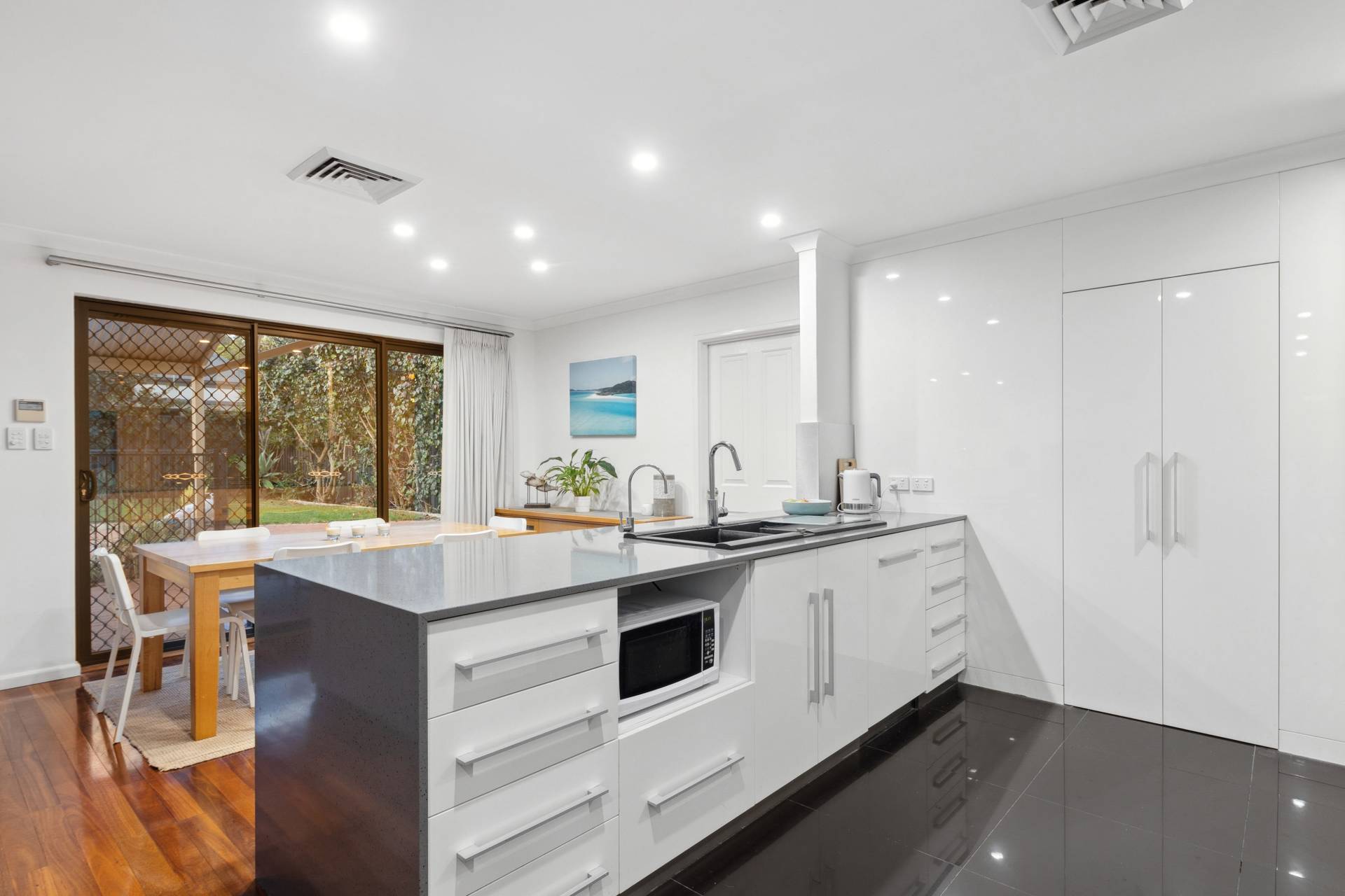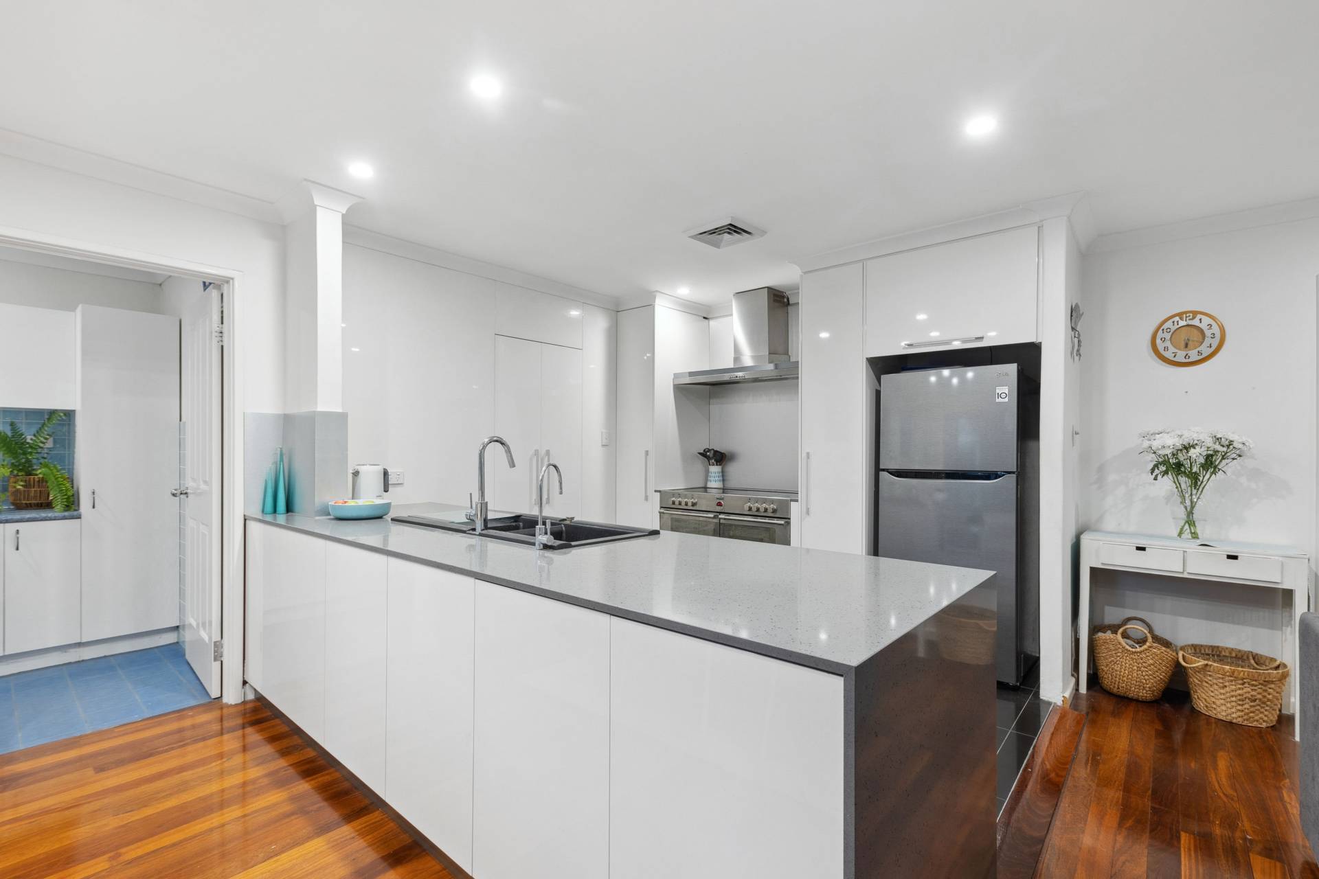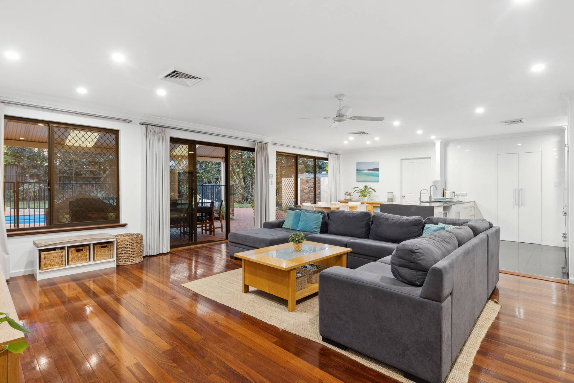 As you enter the home, you are immediately greeted by the warmth of polished jarrah floorboards that flow seamlessly throughout the living areas, exuding charm and timeless character. The spacious open-plan layout effortlessly connects the kitchen, living, and dining areas, making this space the true heart of the home. The stunning chef's kitchen is equipped with premium appliances, ample storage, and expansive benchtops that offer plenty of space for meal prep and casual dining.