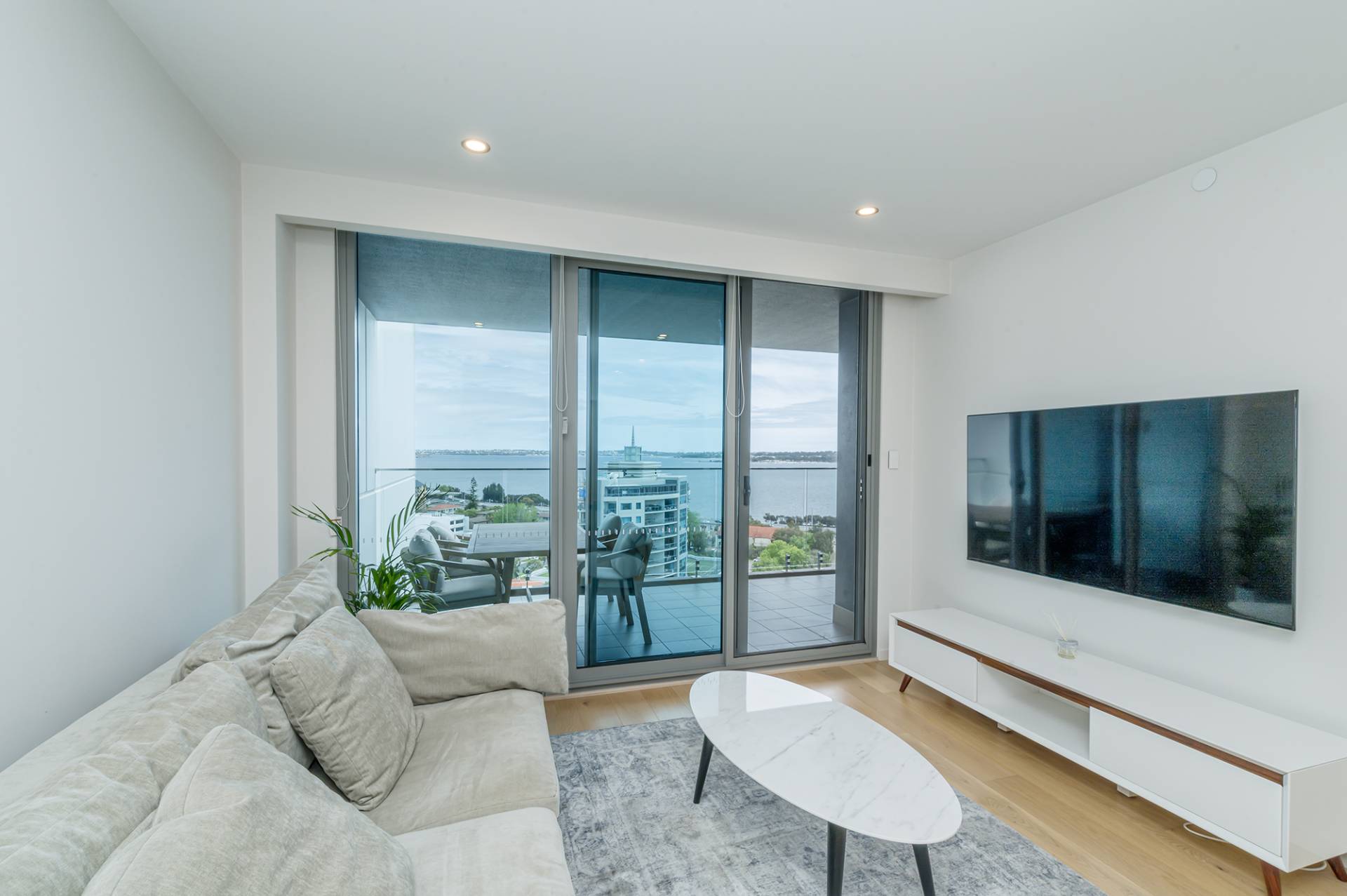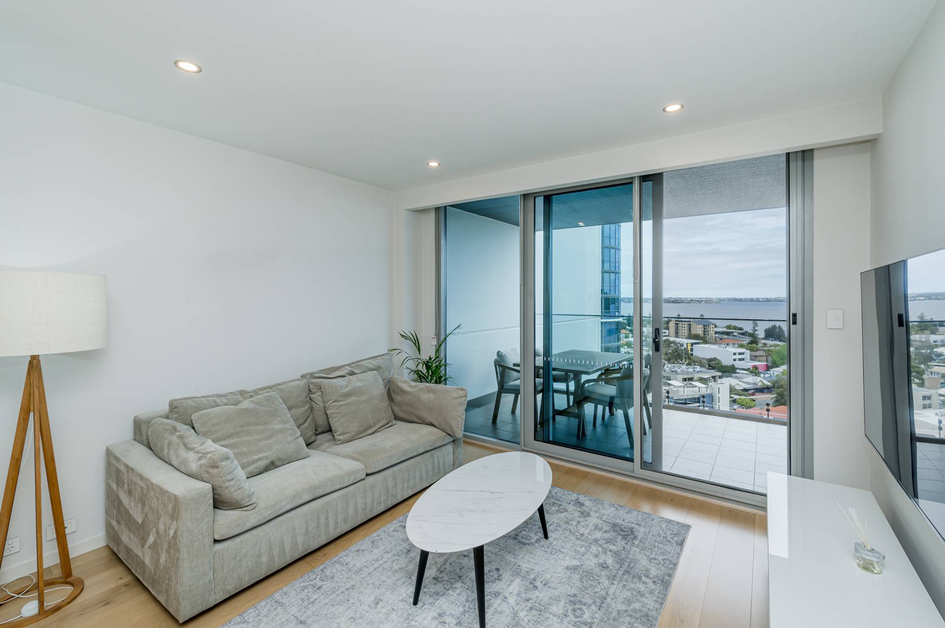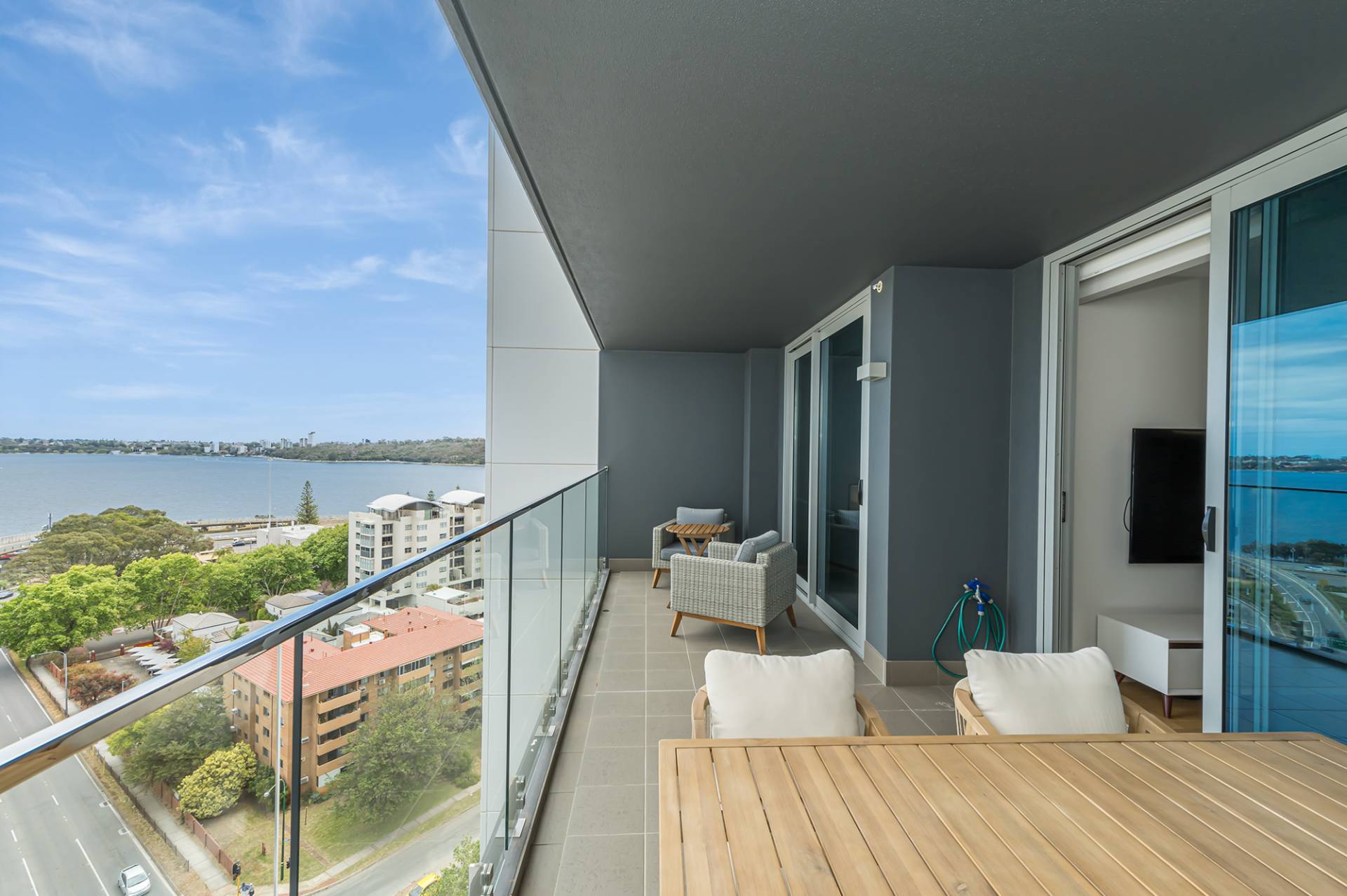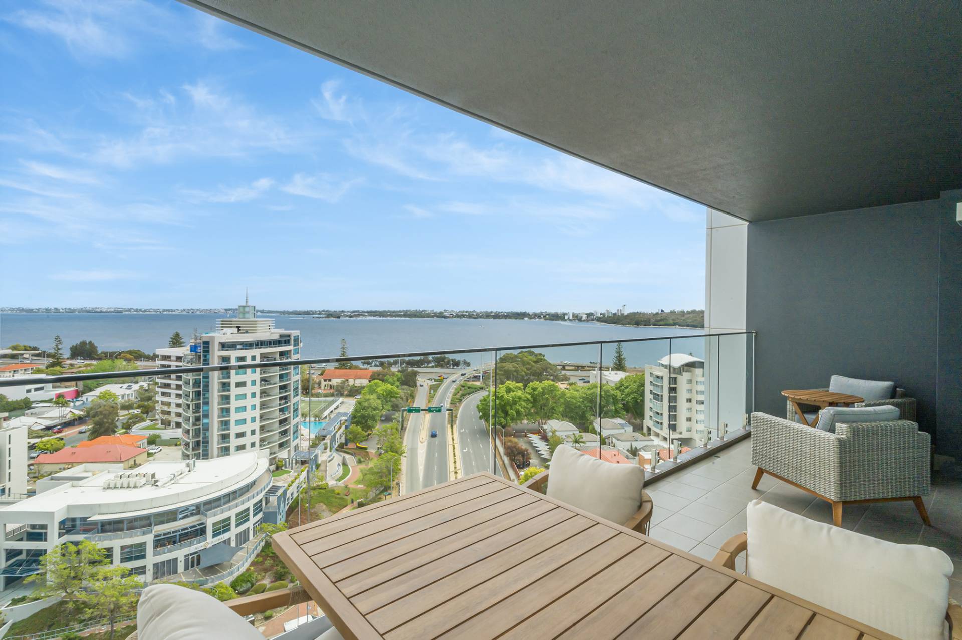 At 1 Harper Terrace South Perth, Aurelia Luxury Apartments offer both a prestigious address and the ultimate in lifestyle features. This one bedroom, one bathroom, one parking apartment on 13th floor of this impressive complex enjoys views of swan river, Melville waters and beyond. It is finished to an extremely high standard throughout, complete with air-conditioning to both living room and bedroom, walk in robe, large bathroom, laundry plus a large balcony perfect for entertaining.