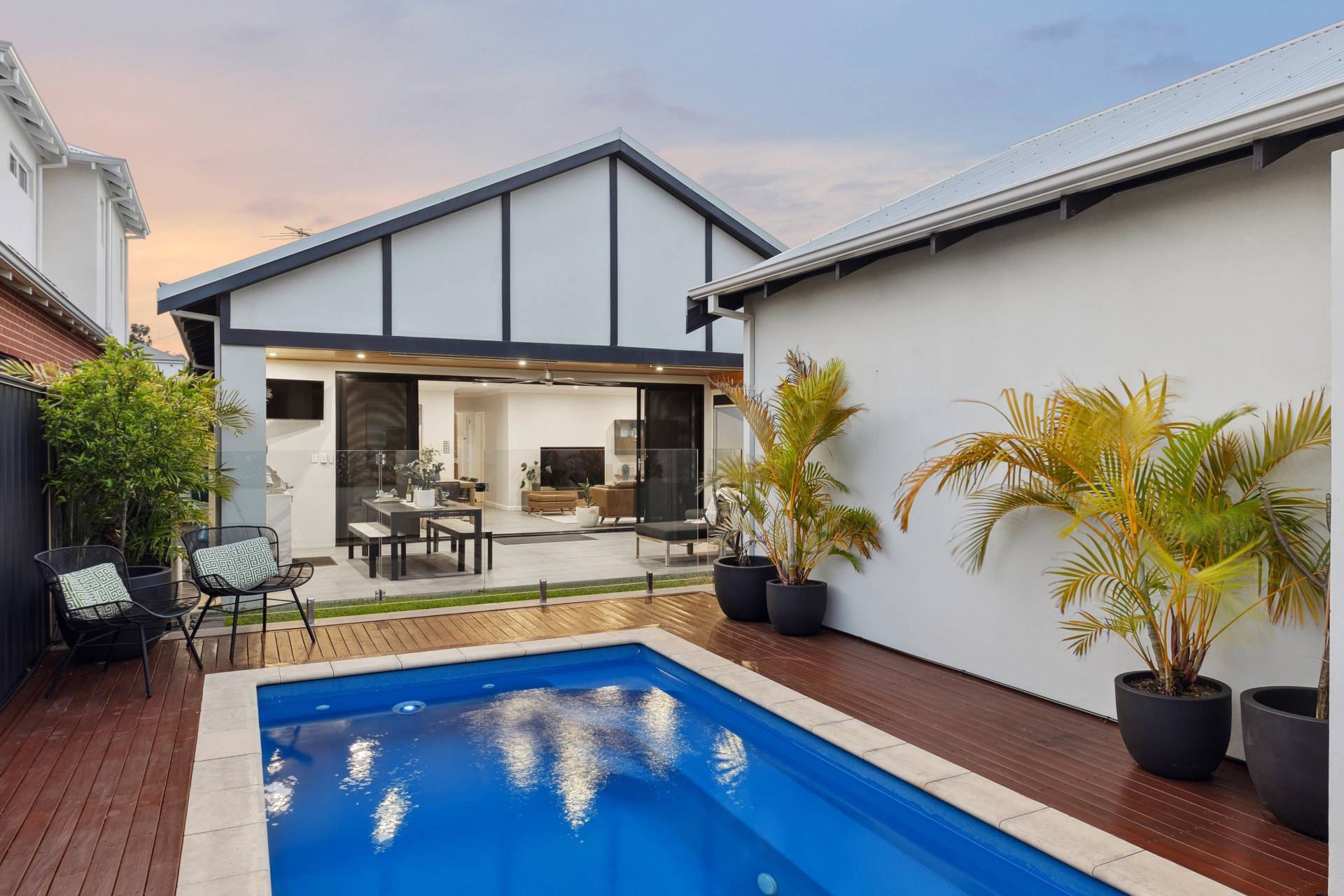 • Glass balustrading and deck around the pool
