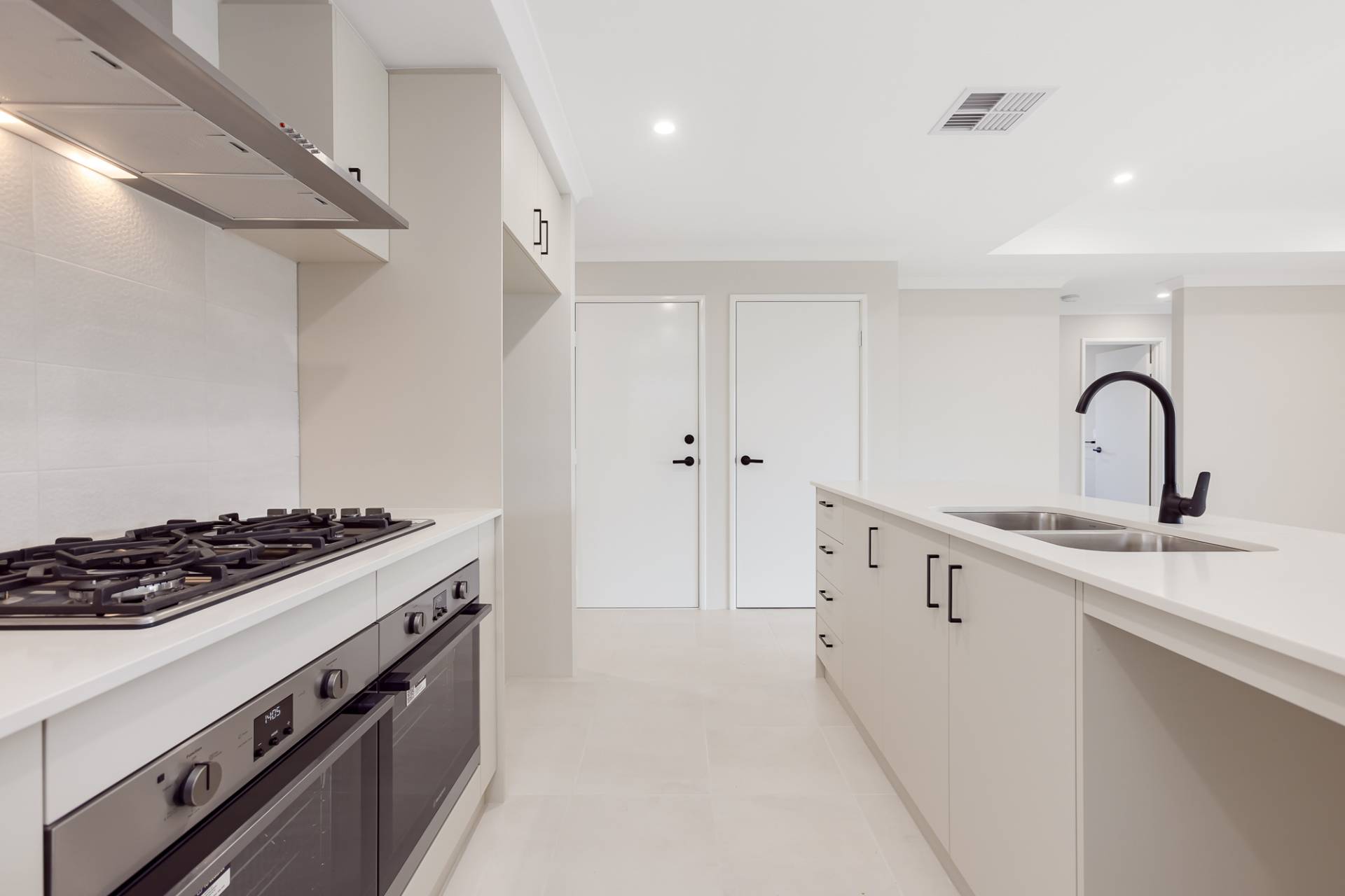 • Stylish kitchen with a large gas cooktop and double oven