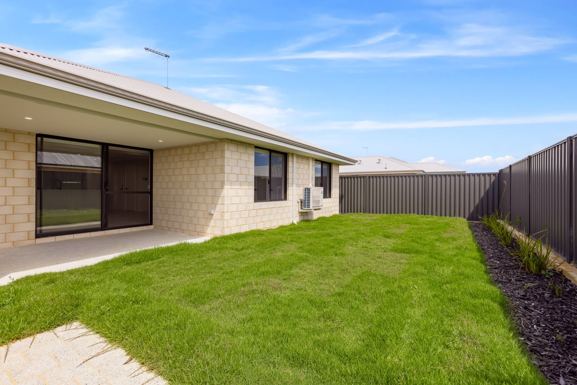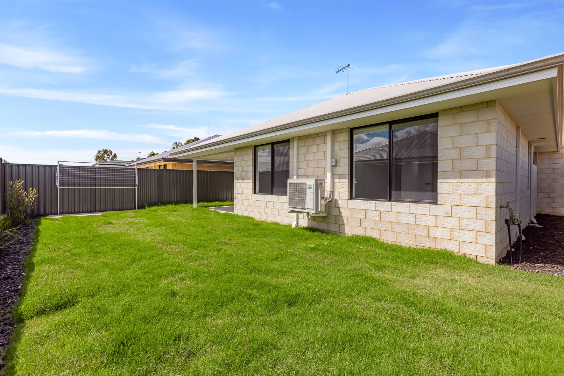 • Spacious backyard with easy-care real turf perfect for the kids and pets to play