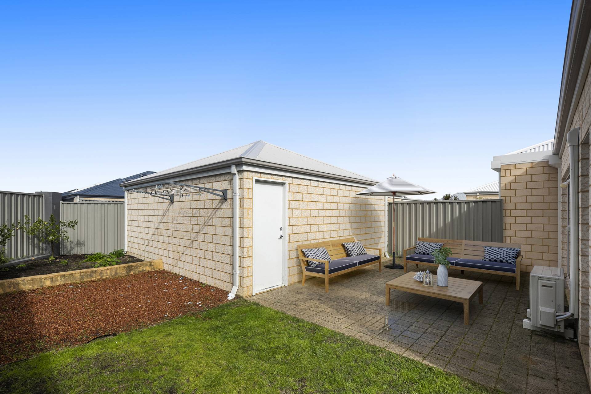 Low maintenance backyard with private courtyard and small grassed area