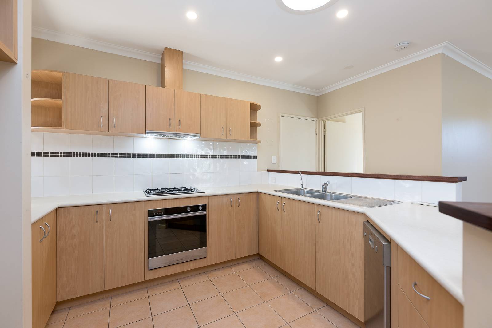 • Gourmet Kitchen: Elegant wood cabinetry, ample storage (including a large pantry), tiled splashback, breakfast bar, and quality stainless-steel appliances (double sink, water filter tap, dishwasher, oven, gas cooktop, and rangehood).