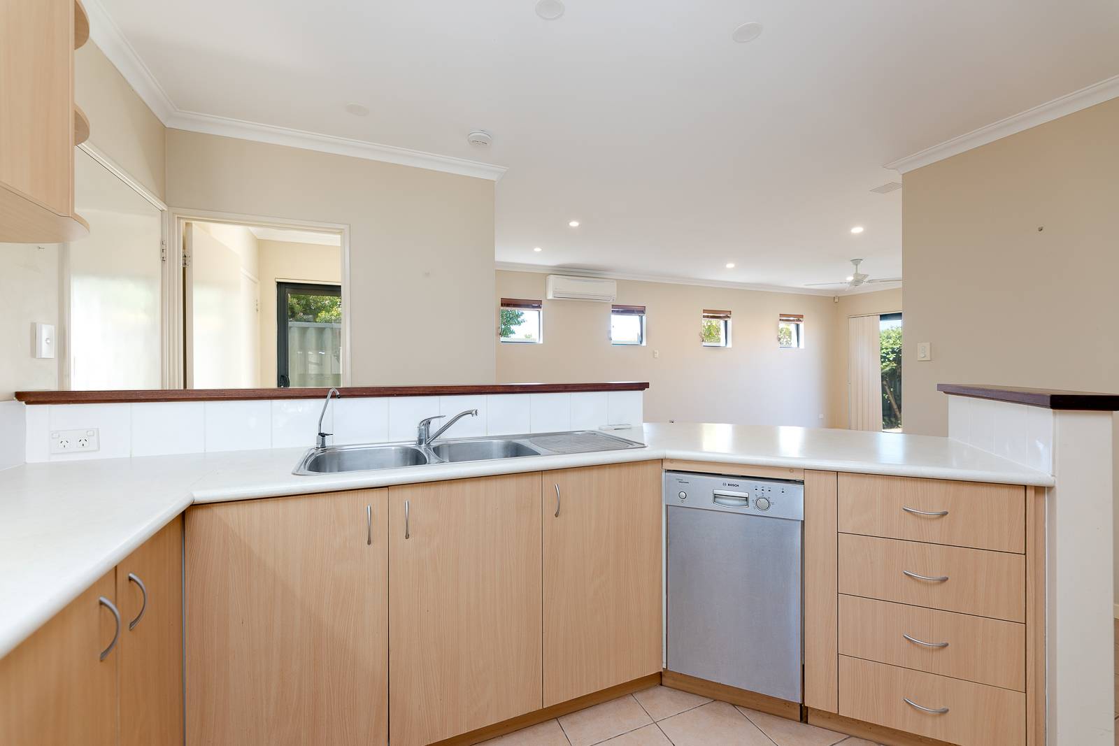 • Relaxing Living & Dining: Tiled floors, downlighting, split system air conditioning, and a ceiling fan create a bright and comfortable space. Double sliding doors open onto the alfresco area for effortless indoor-outdoor flow.