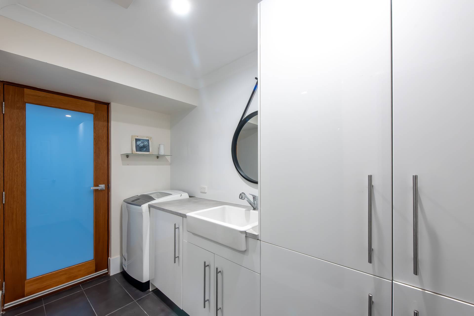 • Renovated Bathrooms: Fully renovated laundry/bathroom combination with a second toilet and shower, modern tiling, and ample storage.